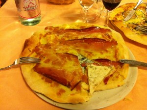 Oggi voglio invece accennare al posto dove mangio la pizza come piace a me. E come raramente ne trovo. Il posto si chiama “La Badiola“. Si trova in uno dei casali che stanno accanto all’abbazia di Farfa (poco più in basso del parcheggio e dell’ingresso dell’abbazia) e dove si mangia, come ristorante, nel pieno mainstreaming sabino di cui parlavo prima.