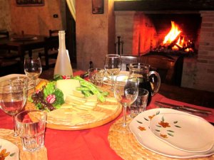 La posizione è assai bella, su una costa che dà verso il paese, con una vista splendida di Poggio Mirteto. Nella notte piena di stelle la cattedrale (illuminata) e accanto il palazzo vescovile svettano su tutto. La cena è all’interno, nel piano terreno del casale, nella sala da pranzo-salotto dei proprietari, davanti a un grande camino nel quale scoppietta un bel fuoco. D’estate si mangia all’aperto, sotto un gazebo, e si sta benissimo.