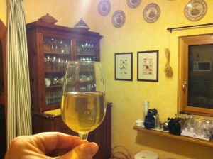 Sorpresa. Il mio vino bianco, che com’è noto a chi mi conosce non amo affatto, con gli anni migliora e diventa quasi buono. Anzi, bando alla modestia, diventa buono. Perde quel retrogusto che non so definire e che, quand’è giovane, rovina il sapore di “spremuta d’uva” che piace tanto a tanti (ma non a me). Con gli anni perde anche il sapore di spremuta d’uva, per fortuna, e acquista un’intensità e un’allusività quasi da vino vero. E anche un discreto corpo direi. Non so perché, non so come, non succede a tutte le bottiglie (in alcune viene la “fioretta”, quel velo bianco che si forma sulla superficie) ma ad alcune succede. E allora è una festa, almeno per me.