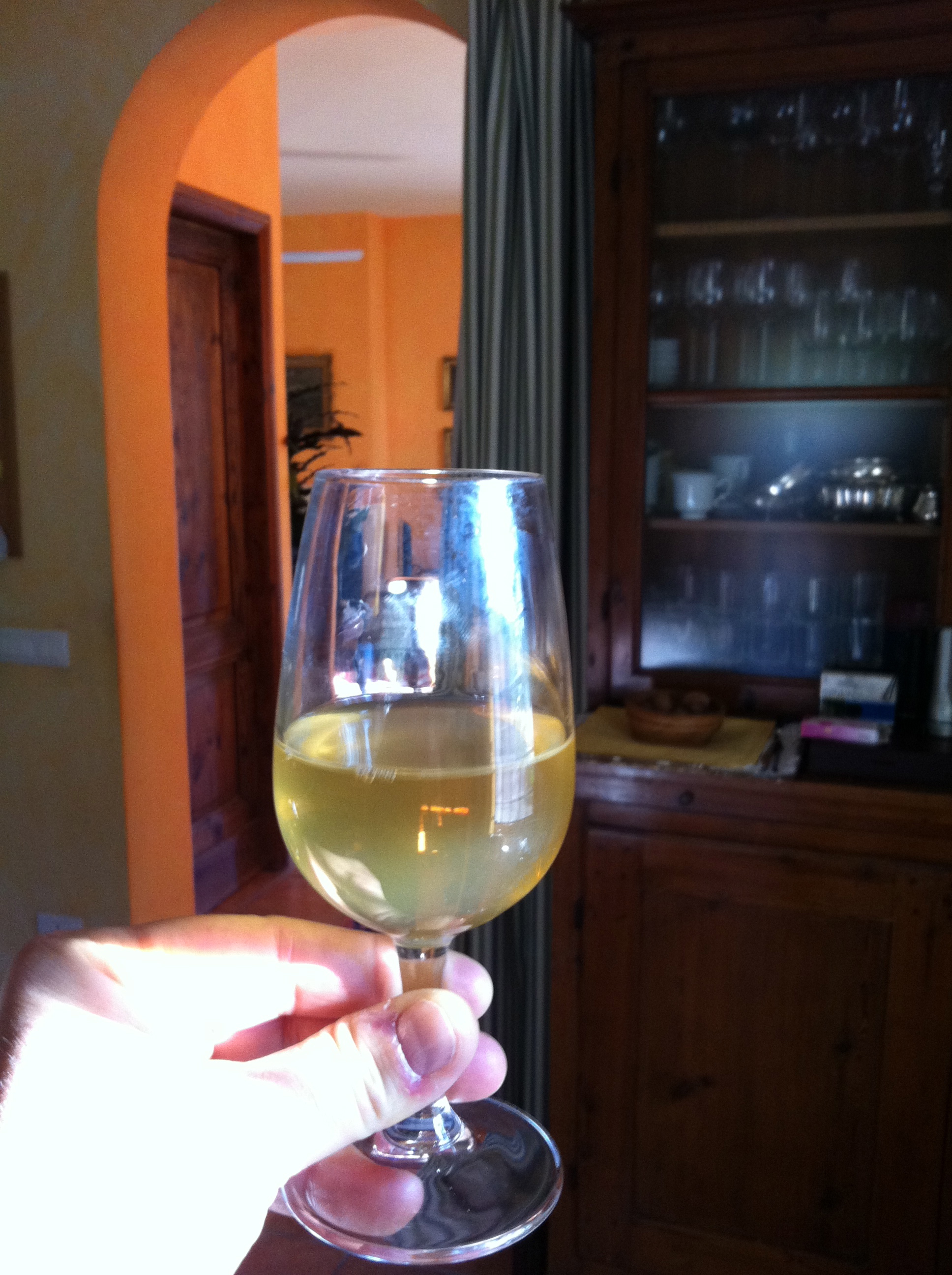 Hallelujah! Oggi avevamo ospiti a colazione e Daniela mi ha chiesto di far assaggiare il nostro vino. Ovviamente a gennaio è ancora assai giovane, giovanissimo, troppo giovane, direi. Ma se il rosso come sempre promette bene: ha un gran colore rubino e ha bisogno solo di un po’ di tempo per maturare ancora, la sorpresa è stata il bianco, il bellofausto 2011.
