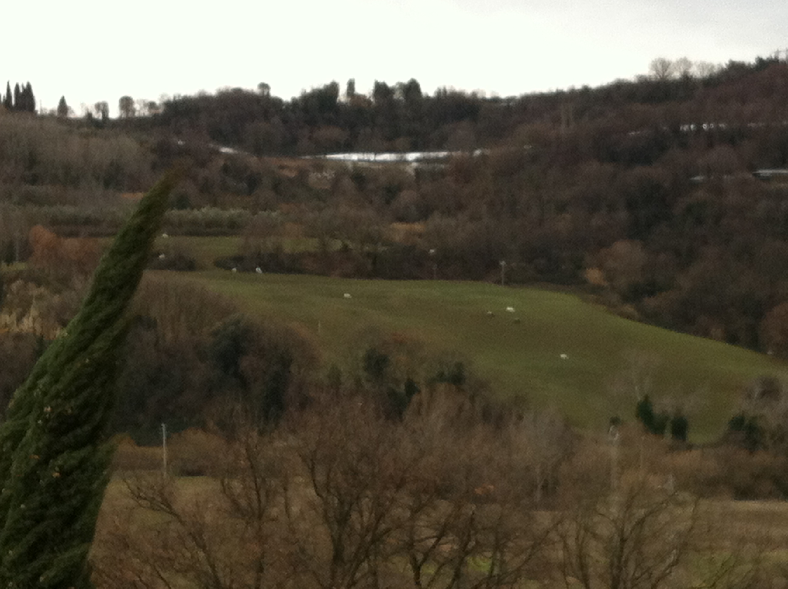 Il pratone ieri alle 13 e 45, con le mucche al pascolo