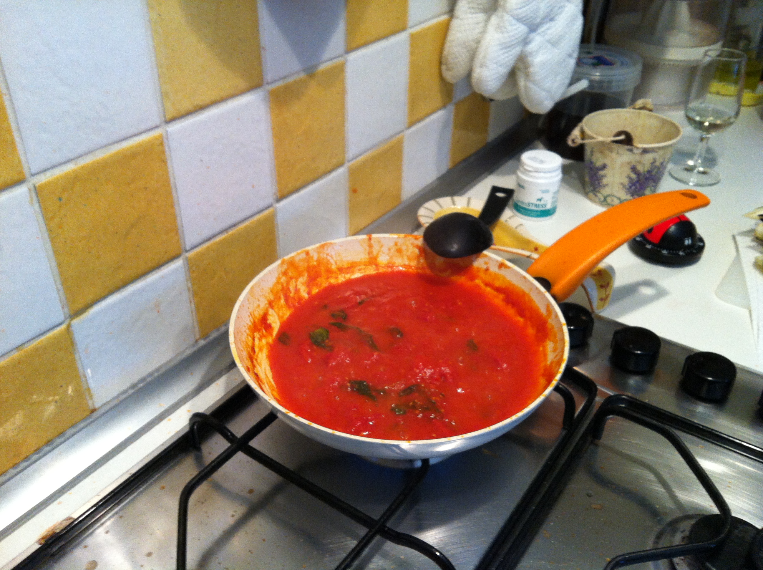 preparato il sugo con dei pomodorini pelati della De Cecco che si chiamano “corbarini” (decisamente buoni anch’essi),