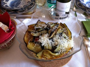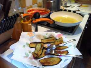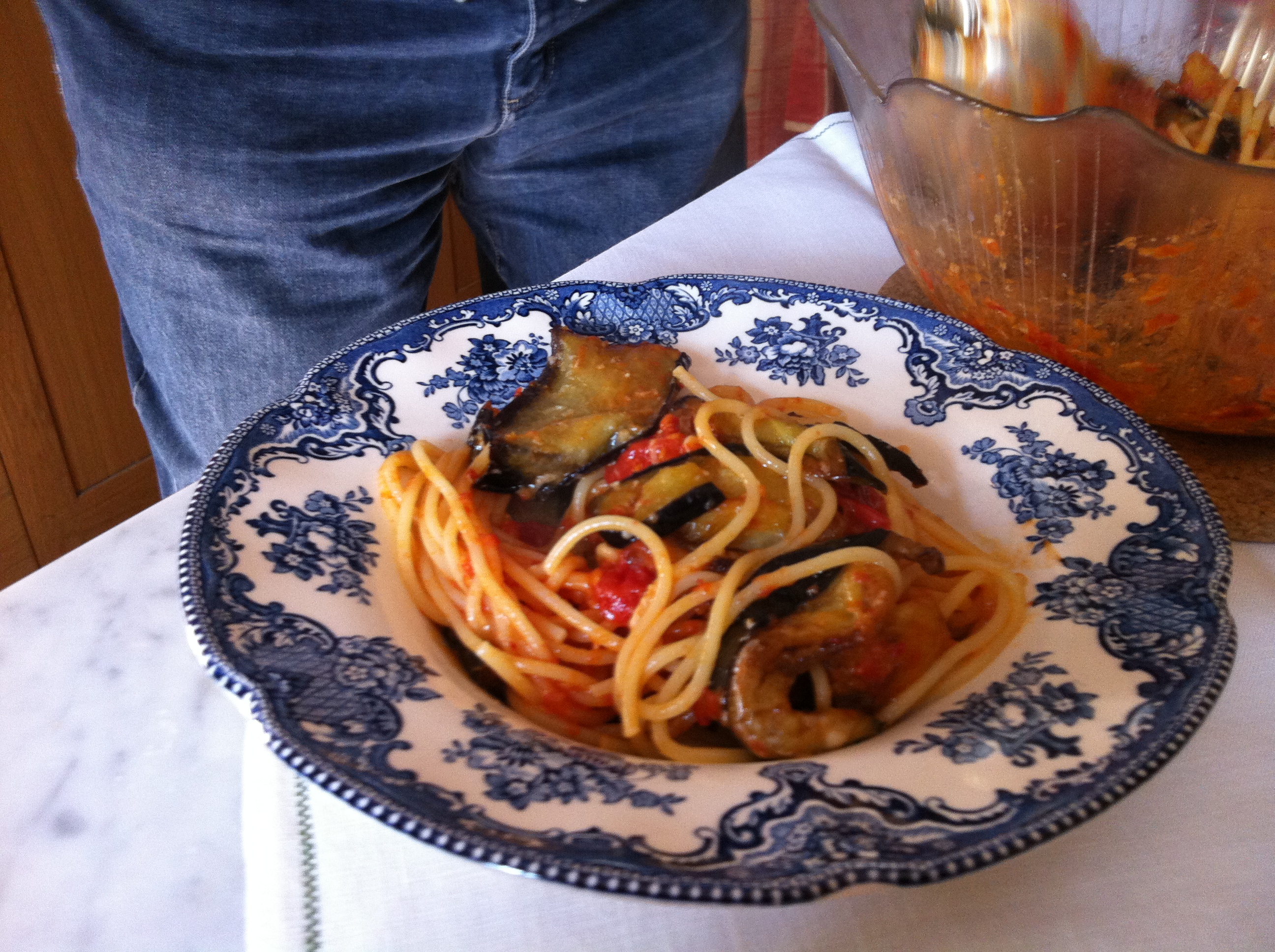 Ieri mio fratello è venuto come ogni sabato a mangiare da noi. E come sempre non si è presentato a mani vuote. Eufemismo per dire che ha portato lui tutto l’occorrente per fare la pasta alla Norma. La voglia gli era venuta nel trovare dal suo ottimo droghiere Fabio (ne ho già parlato, spero presto di andare a vedere le delizie del suo banco al mercato della Serpentara) del formaggio ragusano comme il faut,