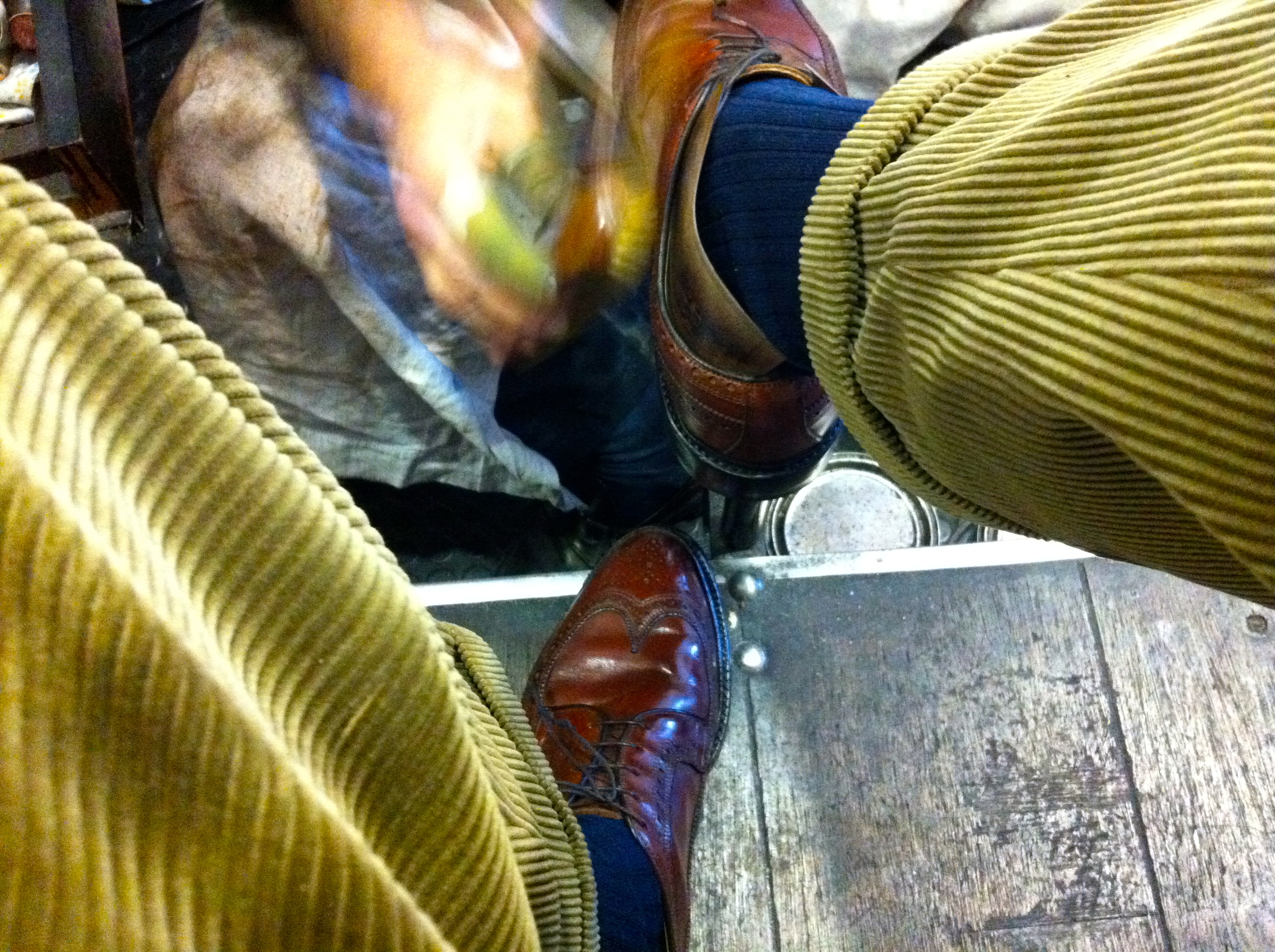 È un momento di relax totale quella mezz’ora in cui ti lucidano le scarpe. Entri, scendi le scale da Corso Trieste, magari hai dei “cadaverini” ai piedi che un po’ ti vergogni, i due fantastici shoeshiners ti salutano con il solito “dottore…” (e anche se non lo sono e di solito a chi  mi appella così replico: “non sono un dottore, sono solo un signore”; lì ormai è accertato: per loro sono, come tutti, un dottore e va bene così…), ti siedi sulla poltrona e comincia la “seduta”.