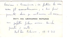 In una scatola ricolma di carte e foto ho trovato questo bigliettino che ha appena compiuto cinquant’anni. Era del mio padrino e accompagnava il regalo della prima comunione e cresima: un bell’orologio Marvin d’acciaio che ho fatto restaurare qualche tempo fa e che mi scordo regolarmente di caricare. Il mio padrino si chiamava (si chiama) Leonardo Rotundi, era (è) ingegnere anche lui, era un grande amico di mio padre e, all’epoca, abitava con la famiglia accanto a noi, dall’altra parte del pianerottolo.