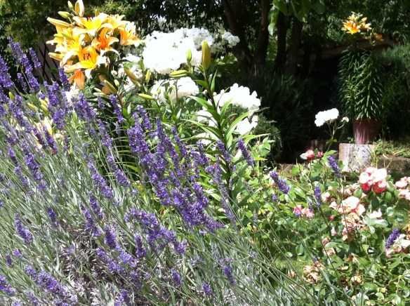 La luce del sole alto nel tardo mattino “brucia” un po’ le sfumature ma non riesce a domare l’esplosione dei colori di questo giugno. Ne godo assieme alle api che immagino discutere tra di loro – oggi io scelgo il viola, io l’arancione, io il bianco che sta bene su tutto…