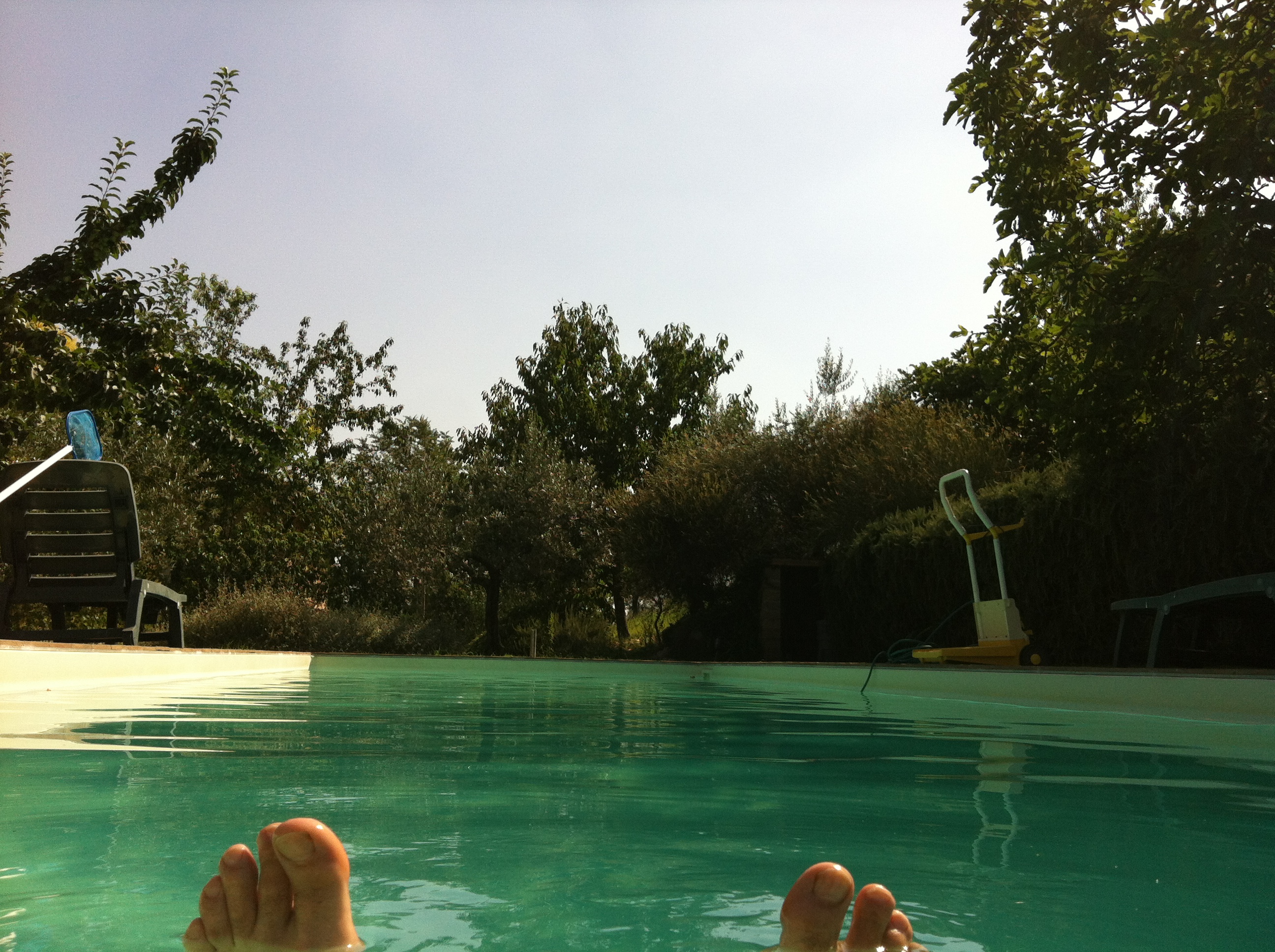 Prima di immergersi nella piscina per il bagno delle 16 e 30 – il termometro nuovo segnava un’acqua a 29 gradi –, Enri prese la retina e liberò la superficie, per quanto era possibile, dai tanti e tanti insetti che avevano scelto di suicidarsi per il troppo caldo, o che avevano calcolato male la loro capacità di resistere nel liquido, come quella mosca tenacemente attaccata al filo del robottino, due o tre centimetri sotto il pelo dell’acqua, così attaccata da restarci.