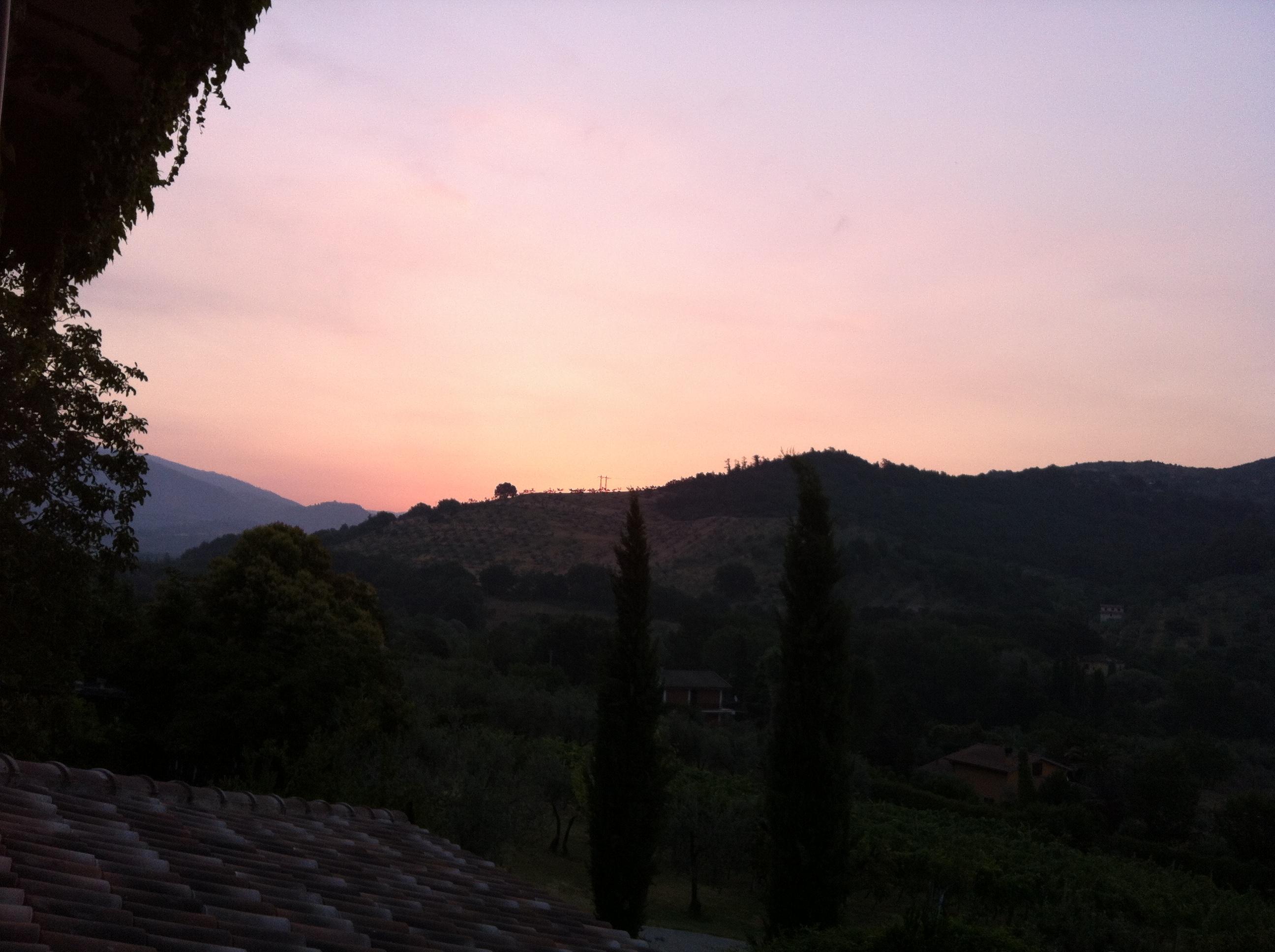 Tra le cose belle dell’alzarsi presto, comunque, oltre alle passeggiate sul sentiero dei Pantani, c’è il momento dell’apertura delle persiane. Soprattutto in mattine come questa e a ore come questa. La luce a volte (e oggi era una di queste volte) è incredibile. E l’aurora è proprio come la dipinge Omero. Ha le dita di rosa e le usa sulla tela del cielo.