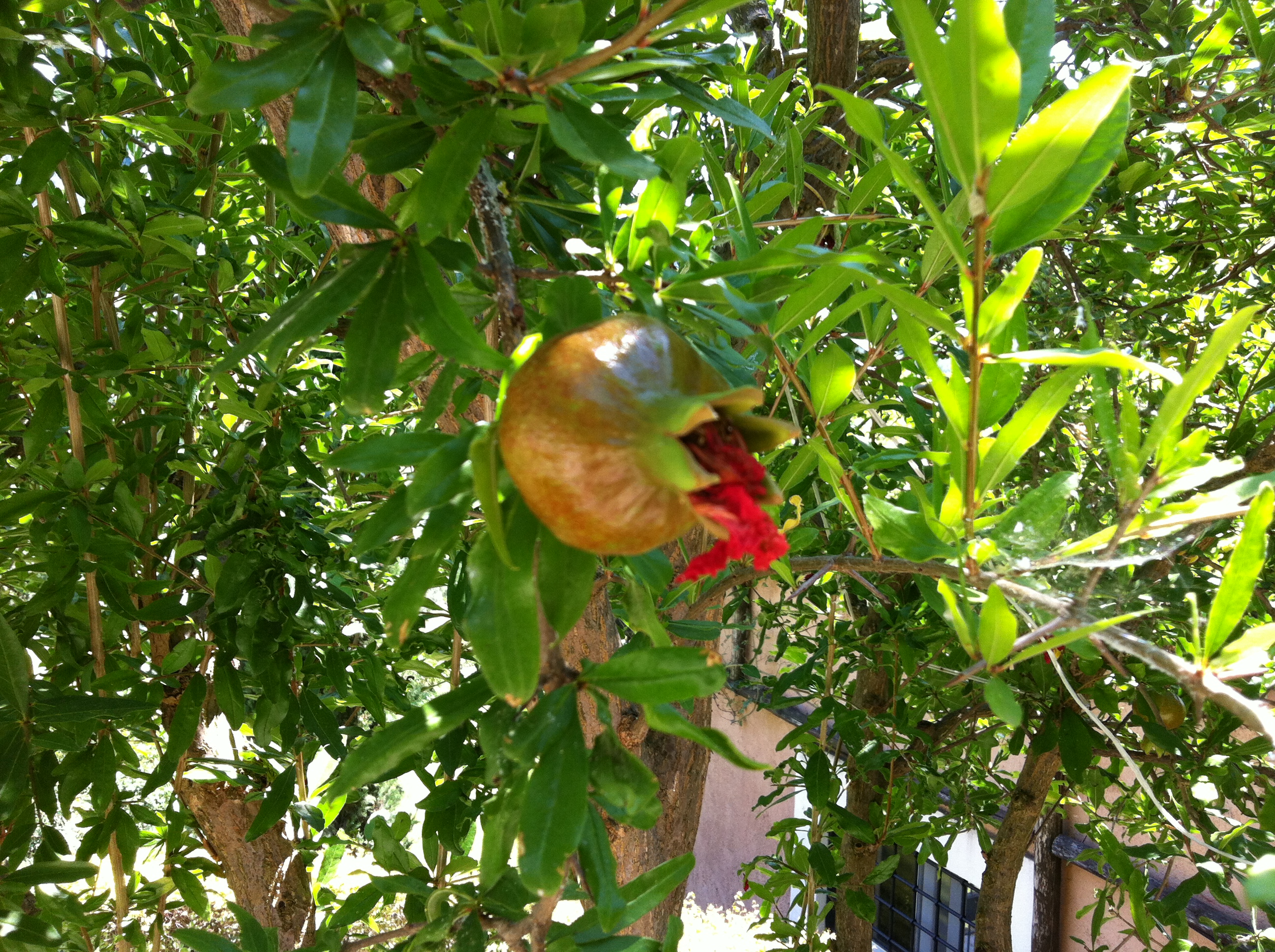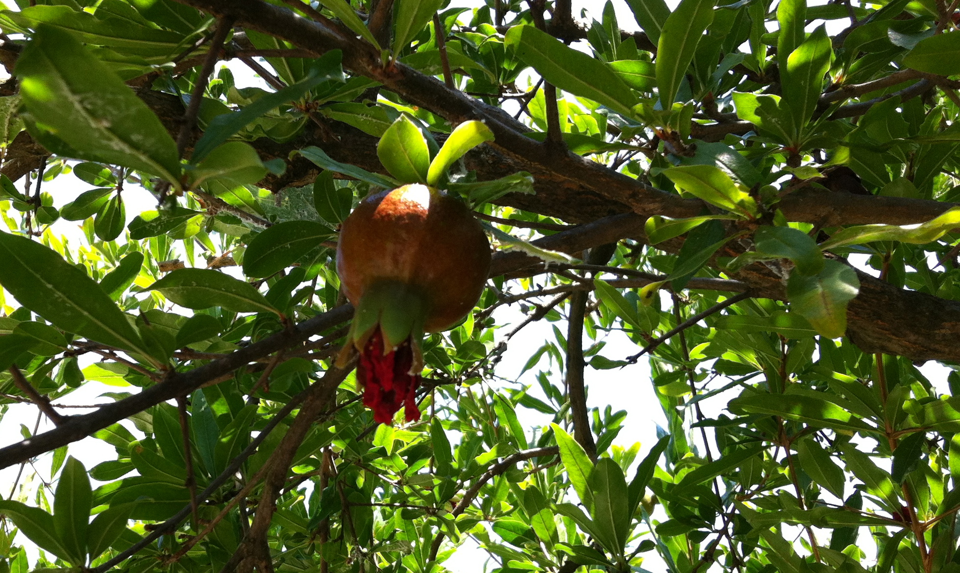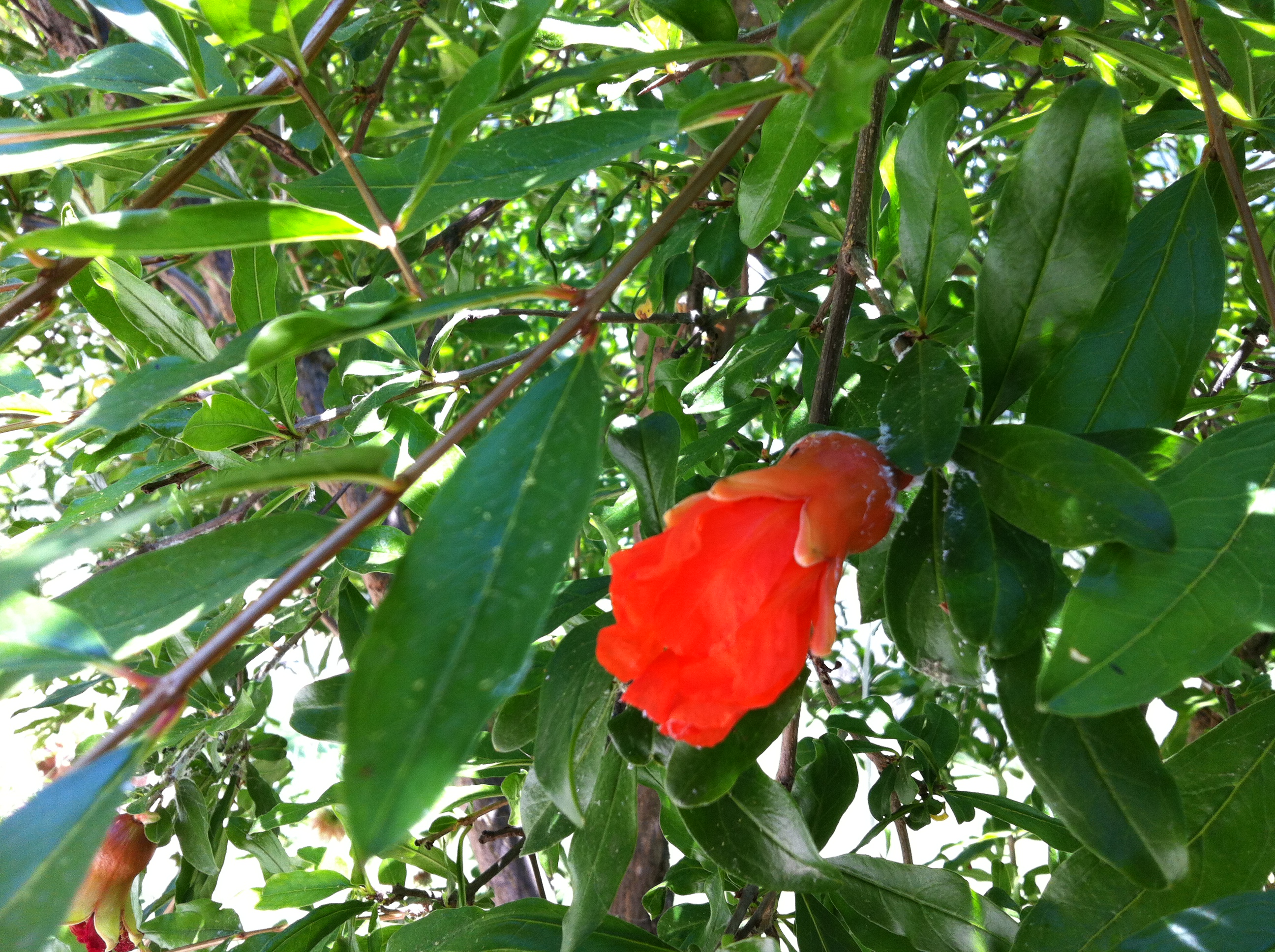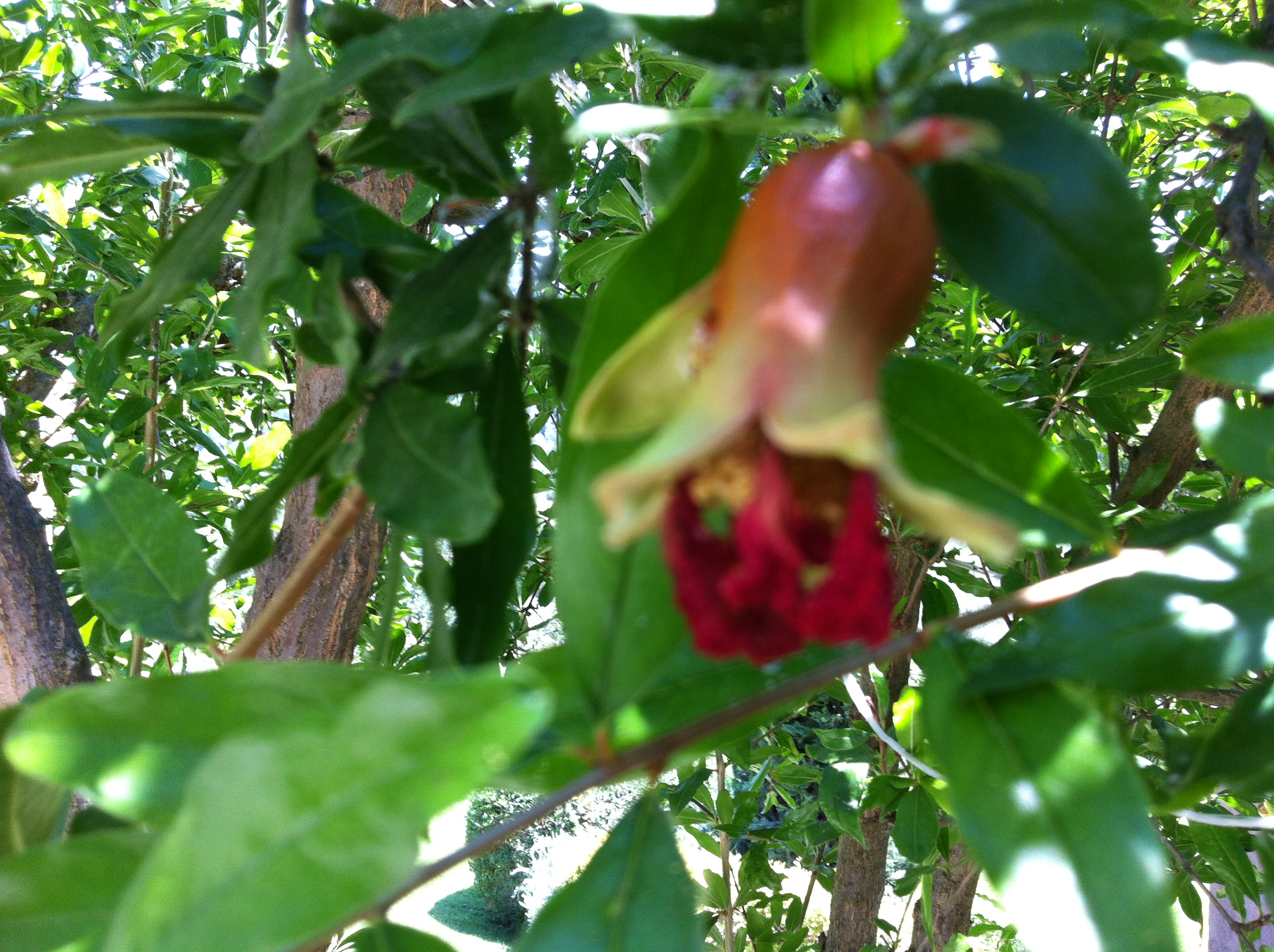 Tutta questa premessa per dire che cose che per altri sono normali a proposito di botanica, per me sono ancor oggi fonte di meraviglia. Come il rapporto tra fiore e frutto. Negli agrumi è facile da vedere: il fiore piano piano appassisce e si sfa; e quello che resta e piano piano s’ingrossa è il frutto (per dirla in termini non proprio scientifici). Ma ieri mi ha colpito, guardando il melograno, come il processo sia (o almeno sembri) quasi inverso. Come una parte del fiore piano piano si allarghi, diventi frutto e inglobi il resto del fiore. Mi rendo conto che la spiegazione è un po’ lacunosa e allora inserisco alcune foto che forse danno meglio l’idea.