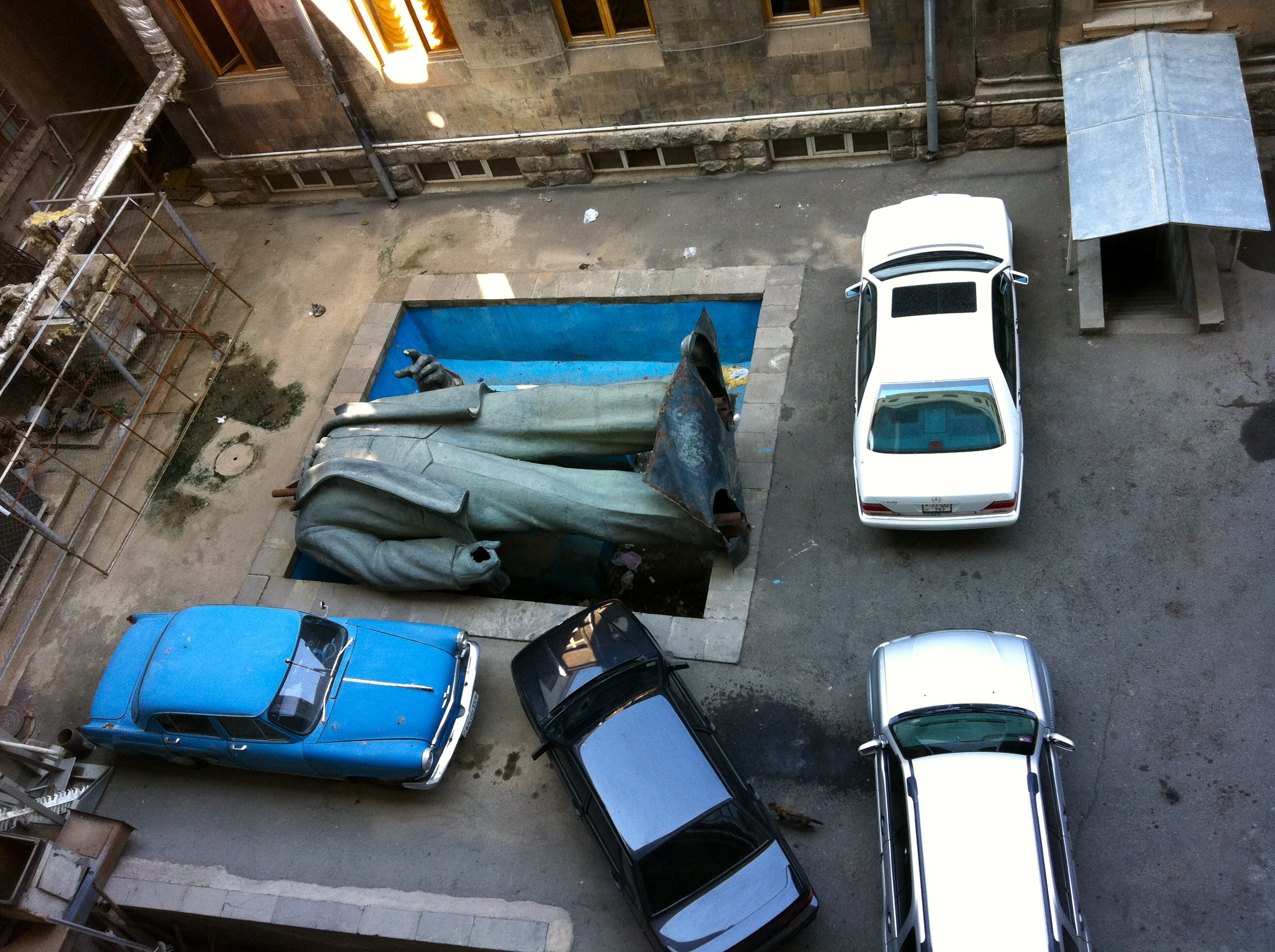 E non posso non ricordare che qualche giorno prima avevamo visto, da una finestra del museo nazionale, la fine ingloriosa di un eroe di altri tempi. Decapitato e con i piedoni all’aria, a coprire una fontana fuori uso, il povero Vladimir Ilic scontava i fallimenti dei suoi eredi (che la nostra guida in verità rimpiangeva, vista la miseria e la corruzione attuale).