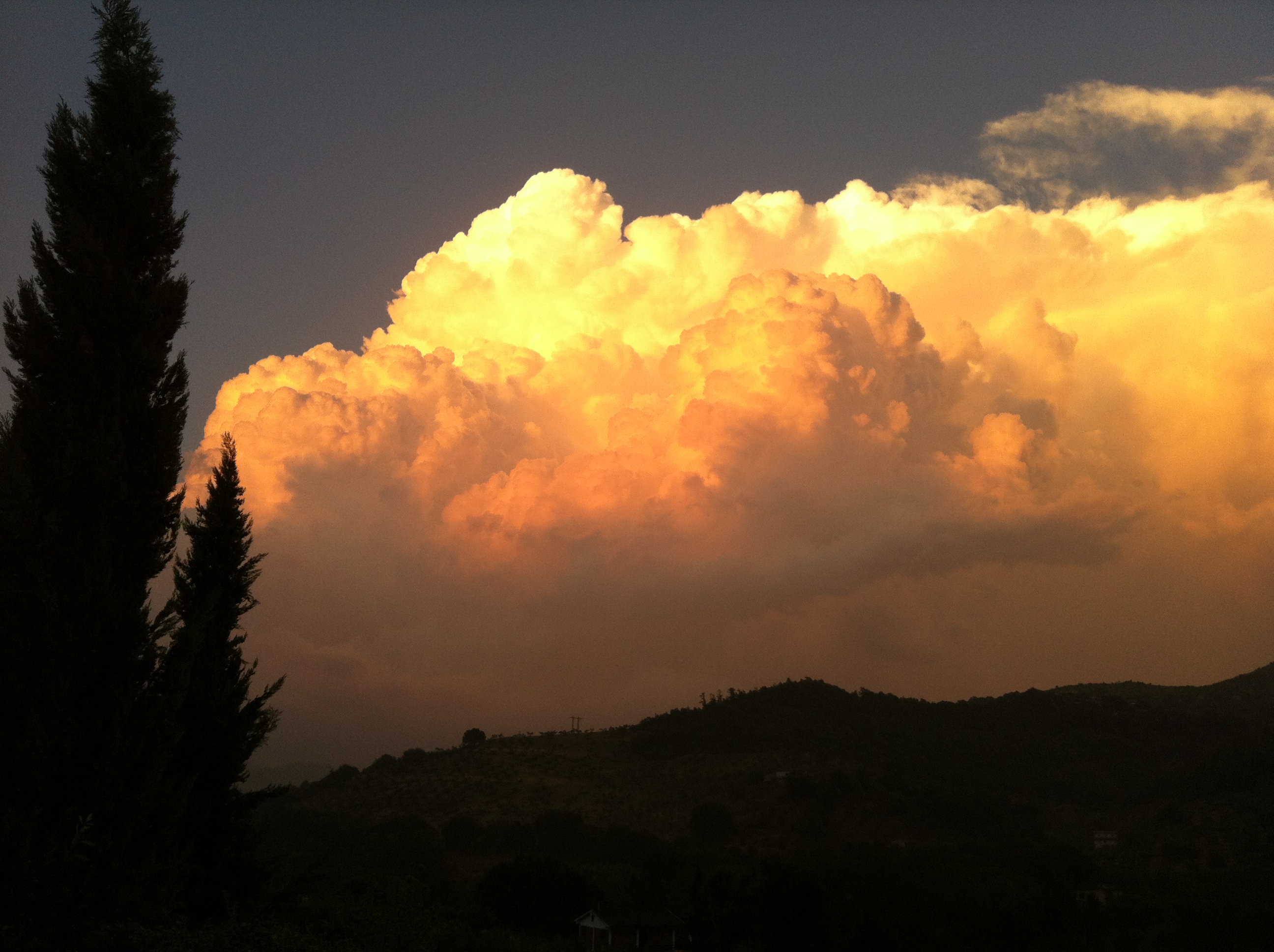 Le ho fotografate con l’Iphone e con la nuova macchina fotografica, la Canon SH 230. Buffo, il primo esalta, ma neanche tanto, i colori dei nuvoloni. La seconda, nonostante i suoi 14 mega pixel, li smorza, li normalizza. È vero che non la so ancora usare ma la cosa mi fa pensare. Le foto che pubblico sono ovviamente quelle dell’Iphone.