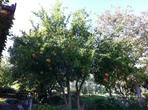 Dalle centinaia di fiori son venuti fuori alcune decine di (ancora non vermigli) frutti. Il melograno (che fino a quando sono venuto qui non sapevo nemmeno com’era fatto) ormai mi stupisce ogni anno di più.