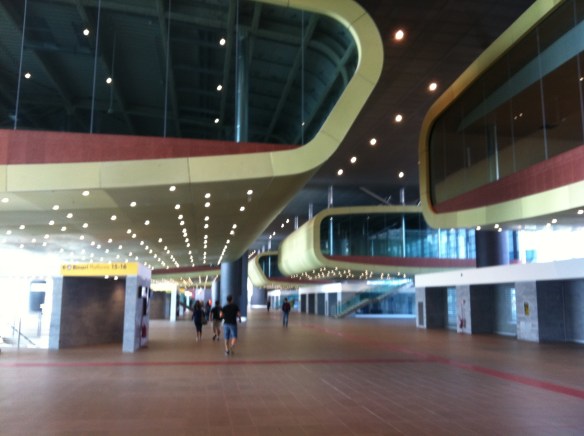 I passi rimbombavano nello spazio vuoto, sotto le centinaia di faretti accesi un po’ inutilmente, quasi un patetico segno di vita in uno spazio altrimenti morto. Chissà come sarà a regime tra (speriamo) qualche mese. La struttura non è male, con quegli spazi commerciali quasi appesi al soffitto, oggi desolatamente chiusi. Certo così deserta la grande stazione fa un effetto strano. Che senso ha aprirla così?