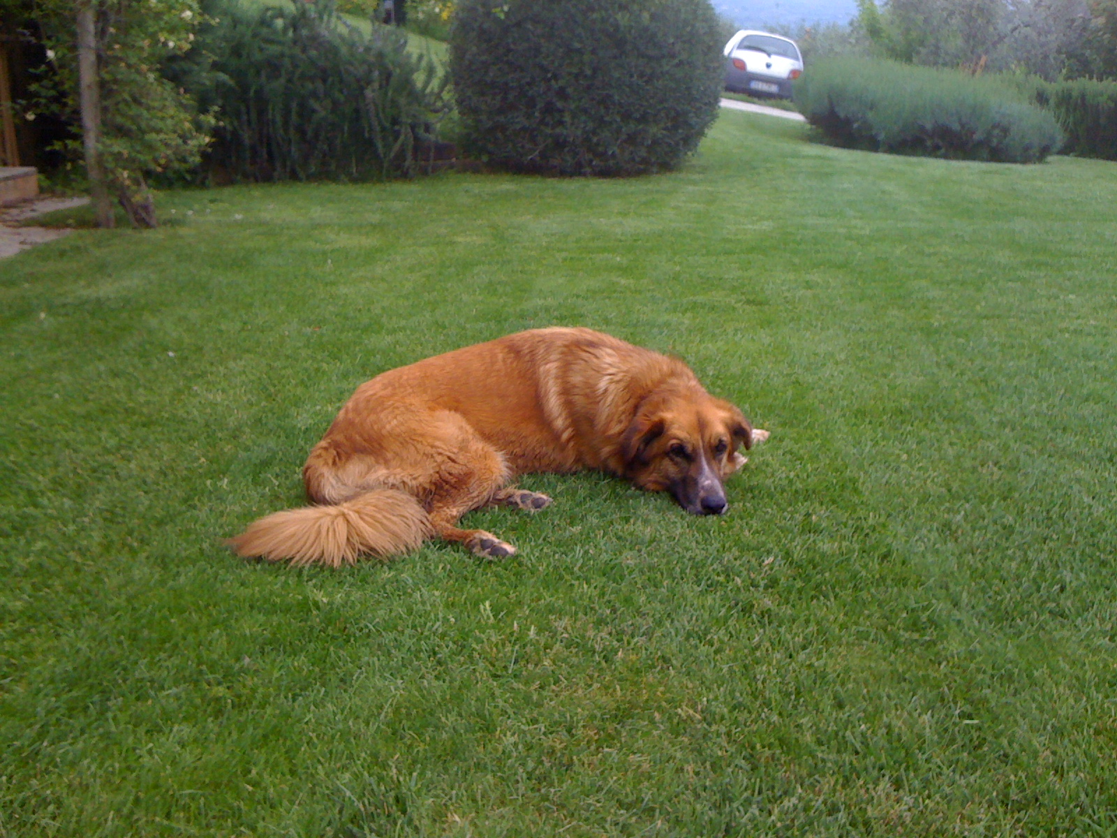 Orsetta è una “cana” forte e gentile. Mi ricorda lo slogan di Séguela per Mitterrand, la forza tranquilla. E in effetti non attacca mai nessuno (a parte correre come una matta dietro la rete abbaiando a ciclisti e joggers sulla strada). Si fa i fatti suoi. Ma se la attaccano, lei non scappa.