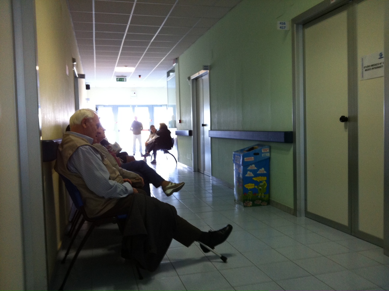 Nel corridoio della clinica dove faccio la preospedalizzazione per il prossimo intervento di sostituzione della mia protesi all’anca, nel lungo corridoio al quarto piano, siamo circa una trentina di persone. Nonostante sia arrivato all’alba delle otto meno cinque, sono il n. 23.
