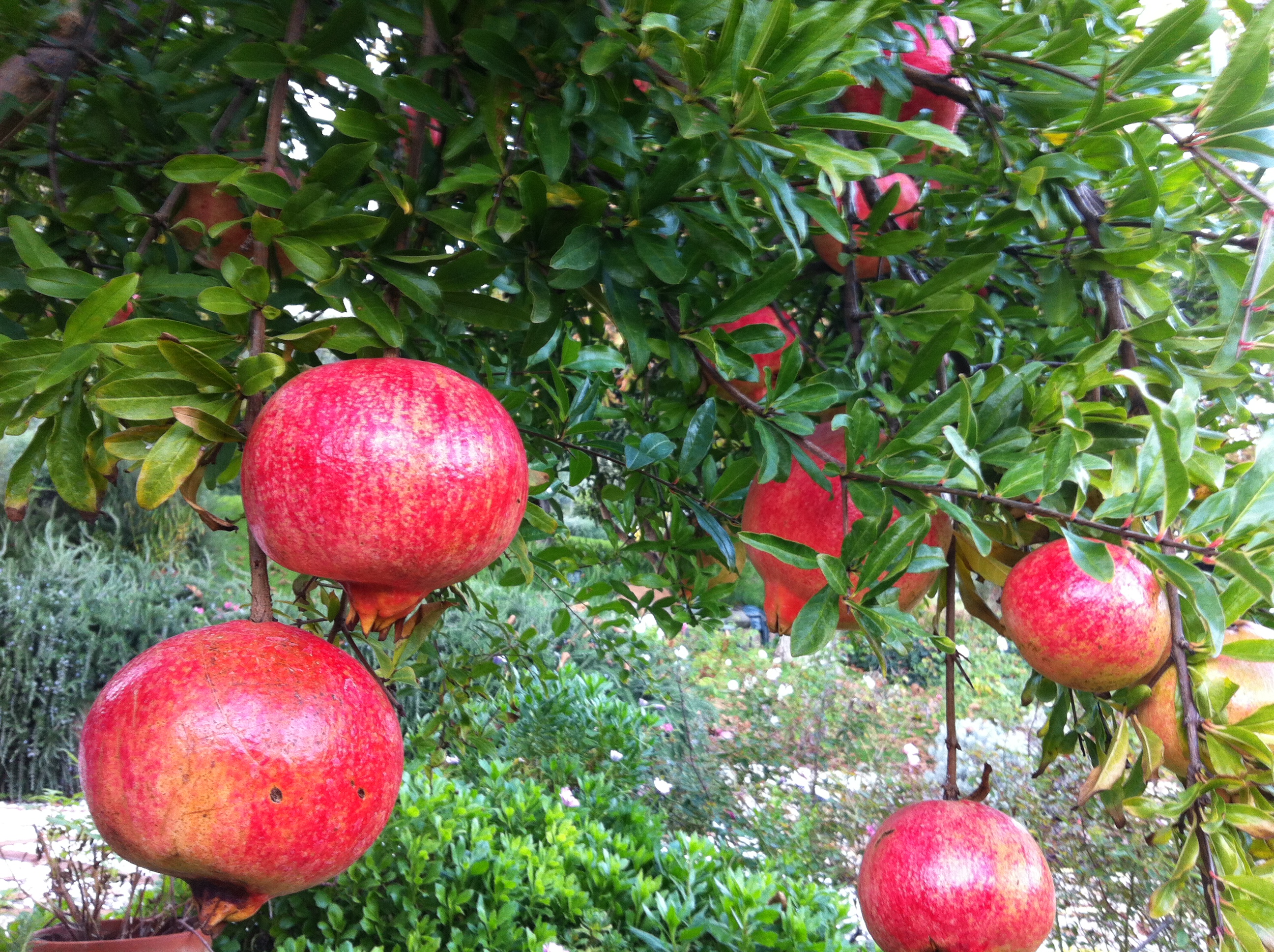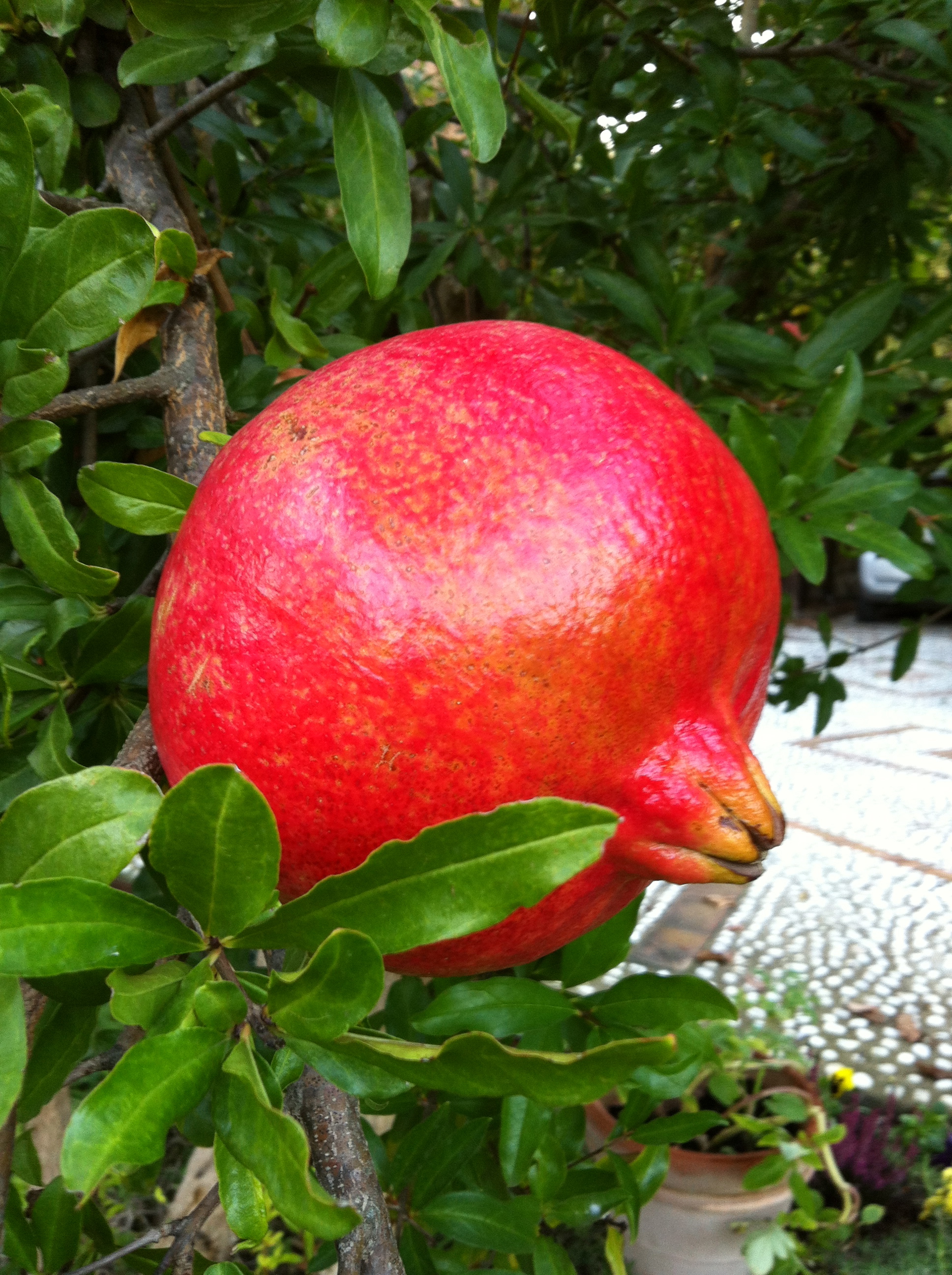 Piano piano i frutti diventano sempre più grossi e sempre più rossi. Il melograno quest’anno sta esagerando, complice forse la stagione. I rami sono stracarichi e trascinati verso il basso dal peso dei tanti (forse troppi) frutti. E io resto a bocca aperta davanti al campione di cui sopra e ai suoi fratelli (vedi qui sotto)
