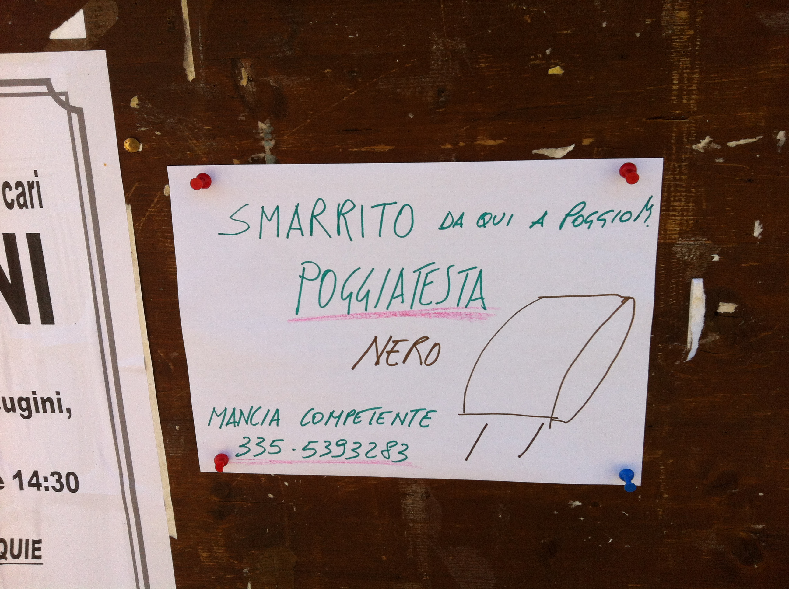 Stamattina, mentre approfittavo di questo incredibile gennaio di sole e passeggiavo per le viuzze di Castel S.Pietro, l’occhio mi è caduto (l’ho poi raccolto, tranquilli…) sulla bacheca nella piazza del Castello dove, accanto all’annuncio del decesso di una signora, c’era questo buffo cartellino.