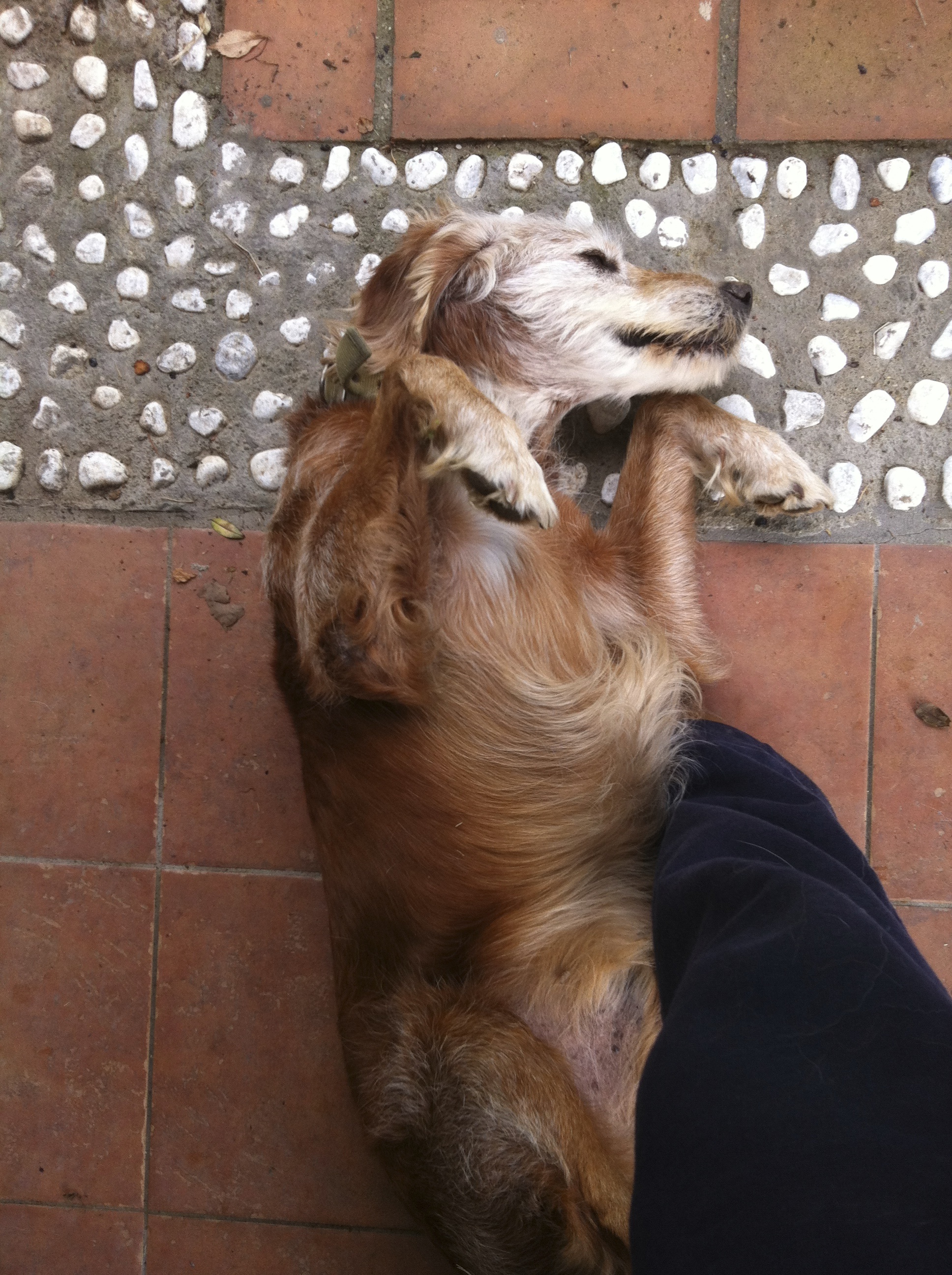 Anche se va detto che tutto il sussiego del nostro vecchiarello sparisce appena gli si propone una grattatina alla pancia (di seguito la sequenza, cronologicamente quasi immediatamente posteriore alle manifestazioni di dignità di cui sopra)