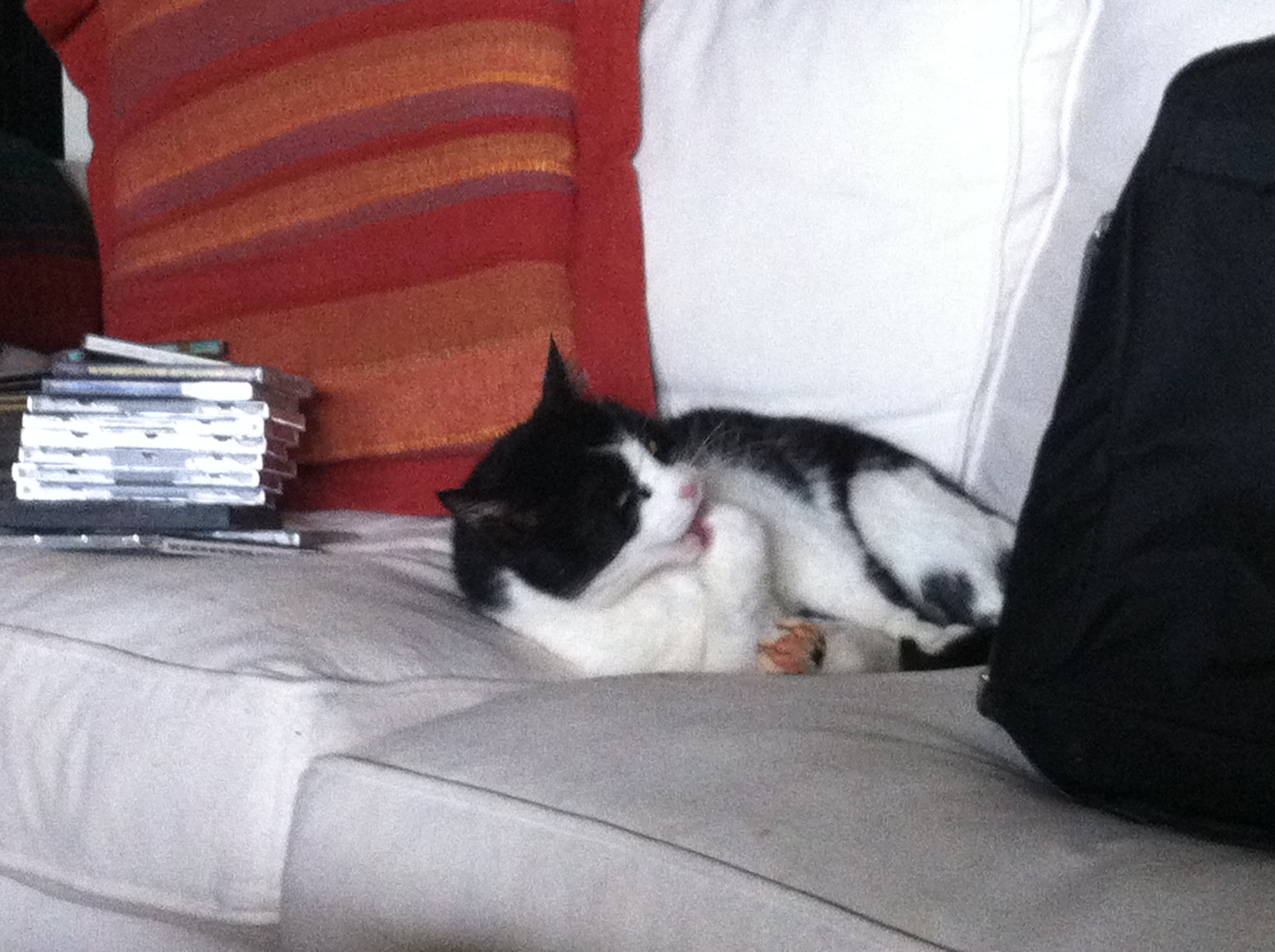 IMG_3712Sullo stereo suona quel genio di Clifford Brown, in un cd preso da uno dei cofanetti (the complete blue note and pacific jazz recordings)  che erano di Alberto. Sul divano, intanto, Sparaciu si autopulisce a colpi di linguetta ruvida.