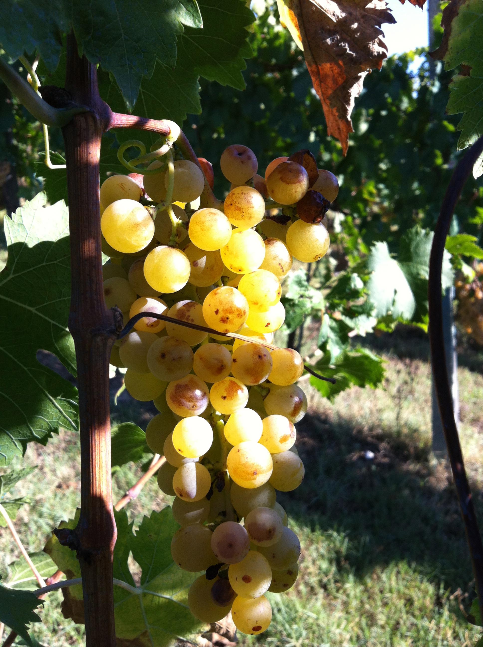 Minivendemmia, oggi. Con Emiljano abbiamo raccolto il filare del moscato. Due bigonci e mezzo d’uva in mezz’ora.