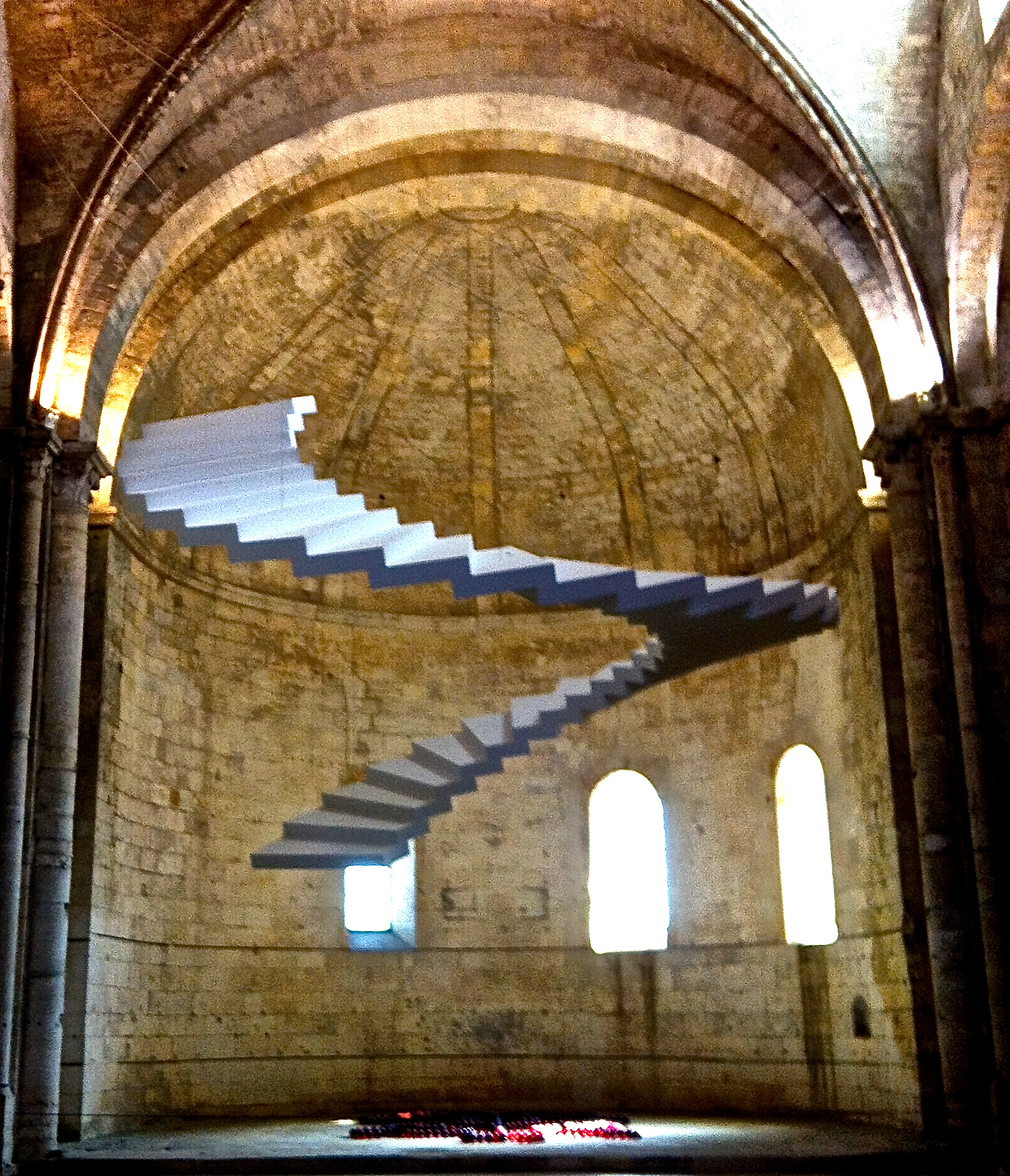 PPS  Per chi fosse interessato, quella ripresa dal mio i-phast (e un po’ rielaborata con iPhoto) è un’installazione nell’abside della chiesa dell’abbazia di Montmajour, a tre minuti da Fontvieille (Arles), in Provenza