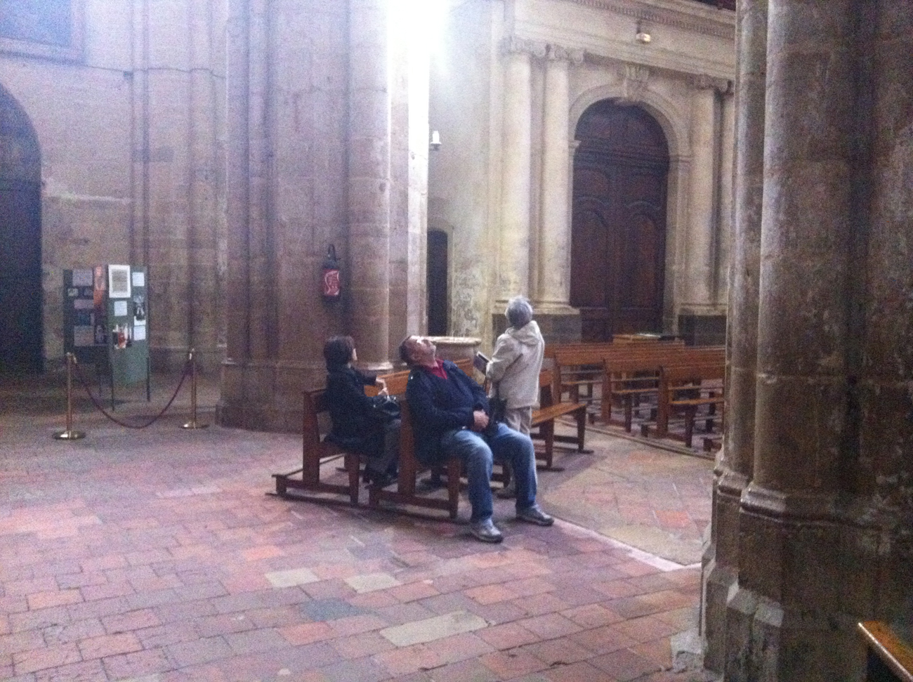 Spesso durante il nostro viaggio in Francia ho scoperto i miei compagni d’avventure a guardare in alto (evidentemente nei momenti in cui io stesso smettevo, magari per un attimo, di farlo). Questa foto,IMG_4477scattata a St. Maximin,ne è un po’ l’esempio. Daniela, Mina e Angelo guadano in alto, io guardo loro e scatto. Ma fino a un attimo prima, anch’io avevo il naso all’insu. E guardavo questo