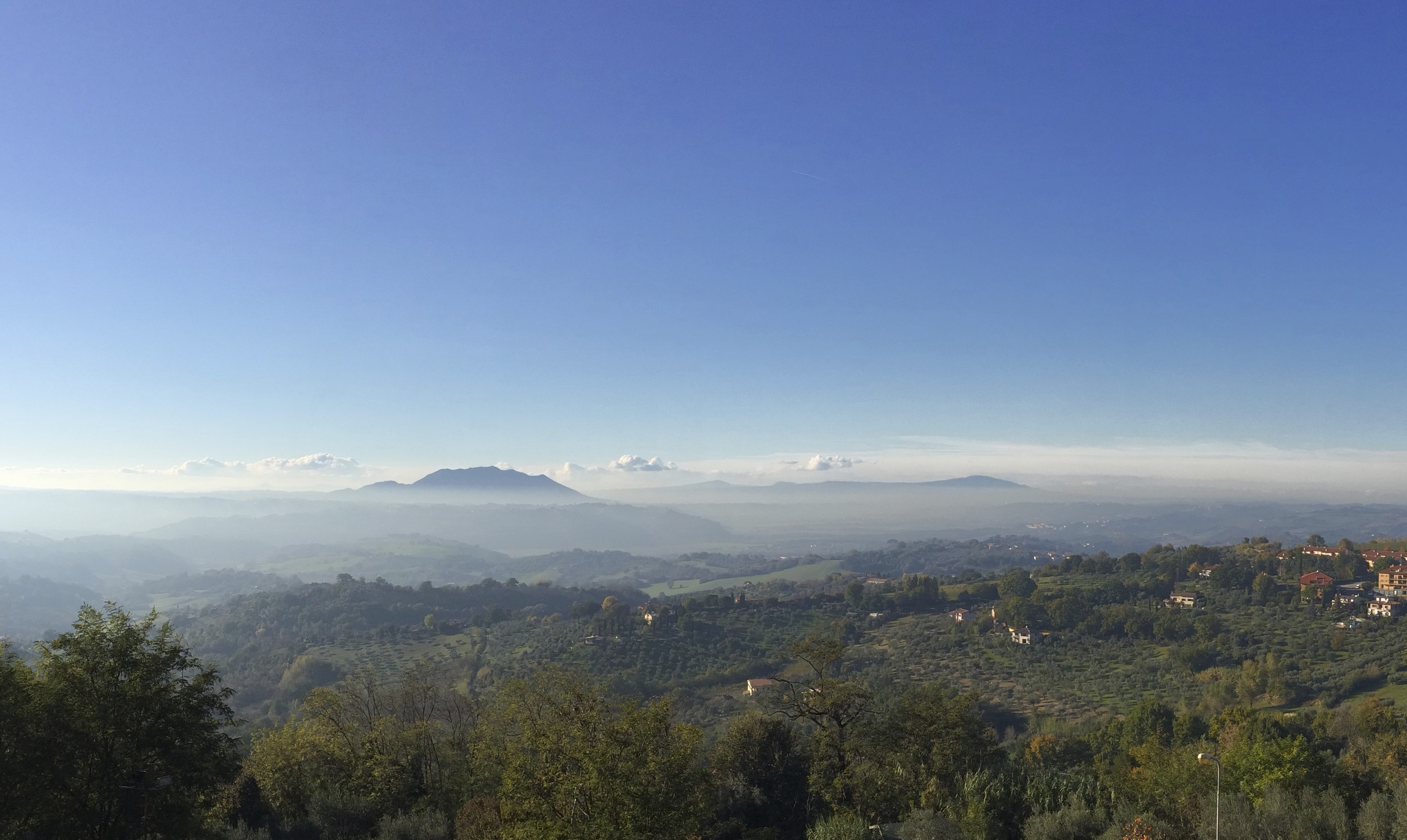 Dietro il Soratte ci sono i monti Cimini e poi, ancora più dietro, una macchia scura all’orizzonte, probabilmente i monti della Tolfa.