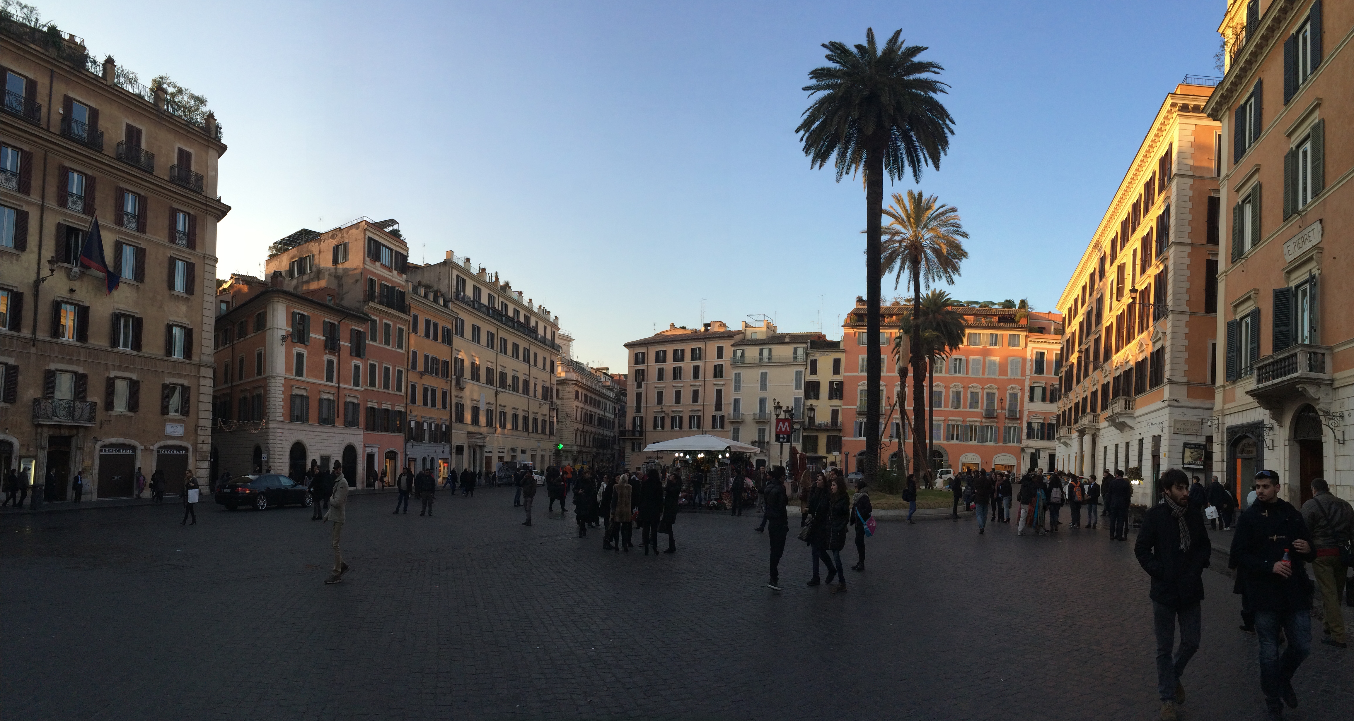 IMG_4132E, dopo un delizioso gelato da Grom alla fine di Via della Maddalena, e un passaggio per Piazza in Lucina (con relativo occhio gettato – ma poi ripreso – nella basilica), salendo per la Via dei Condotti sono arrivato a Piazza di Spagna. E prima di infilarmi nel tunnel che sale verso il parcheggio, ho dato fiato alle trombe panoramiche del nuovo I-phast per immortalare la piazza nel tramonto decembrino.