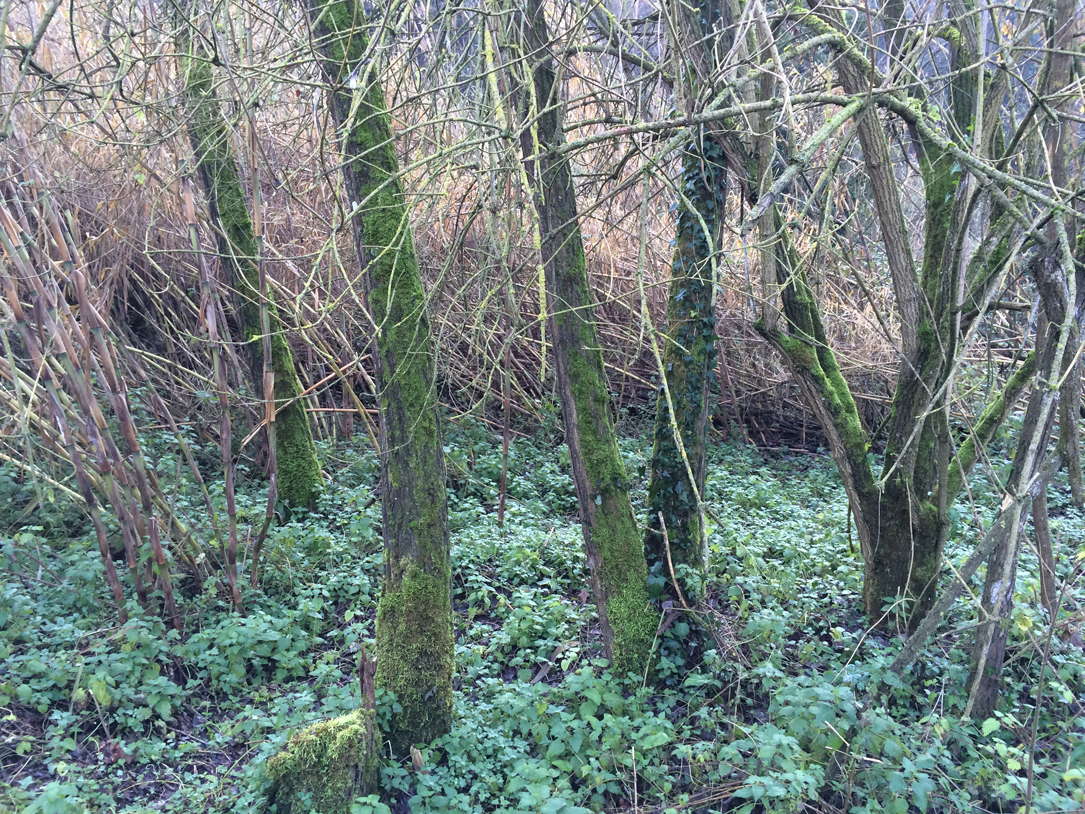 Faceva freddo stamattina. Colpa anche dell’umidità (direi al 100 per cento…), prima che il sole salisse a ristabilire un po’ d’ordine. Non so se è solo perché c’ero – stamattina e lì – ma a me questa foto, con i pioppi, il muschio, i rami adunchi, le ortiche e le canne, mi fa sentire il freddo umido di stamattina 8 gennaio.