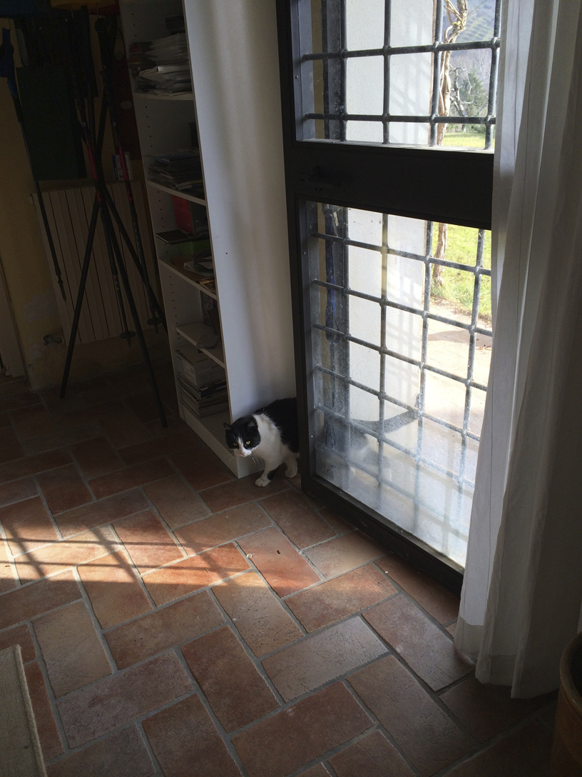 Orsetta e Chicca (e prima anche Fausto) grattano con le zampe, spingono con il naso e, rumorosamente anzichenò, fanno il loro ingresso nel mio sancta sanctorum. Sparaciu (detto Meo) invece no. Lui è molto discreto. L’ho visto mettersi su due zampe e, facendo leva con il peso di tutto il corpo, spingere e aprire lentamente la porta di ferro e vetro.