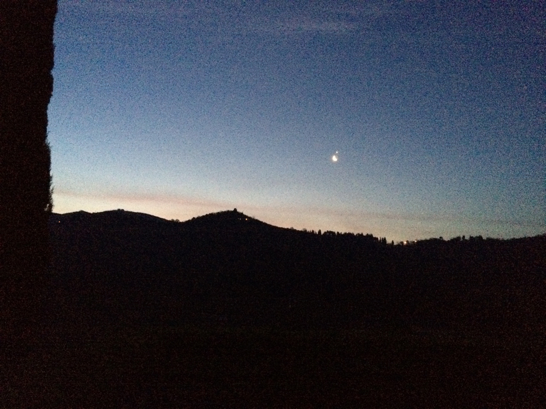 La mattina dopo l’immagine che ho già pubblicato, nuova fotografia alla luna prima dell’alba e il nostro satellite stavolta è a due millimetri (nella foto ovviamente) dalla stella del mattino. Mentre ieri alla stessa era sopra di essa, a svariati centimetri.