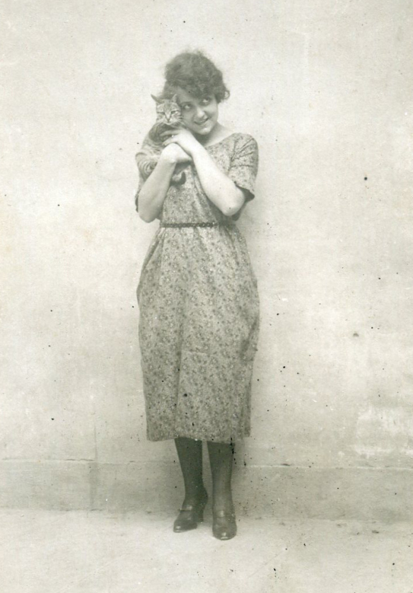 Con il gatto, in una posa un po’ allusiva, quasi da stella del muto,