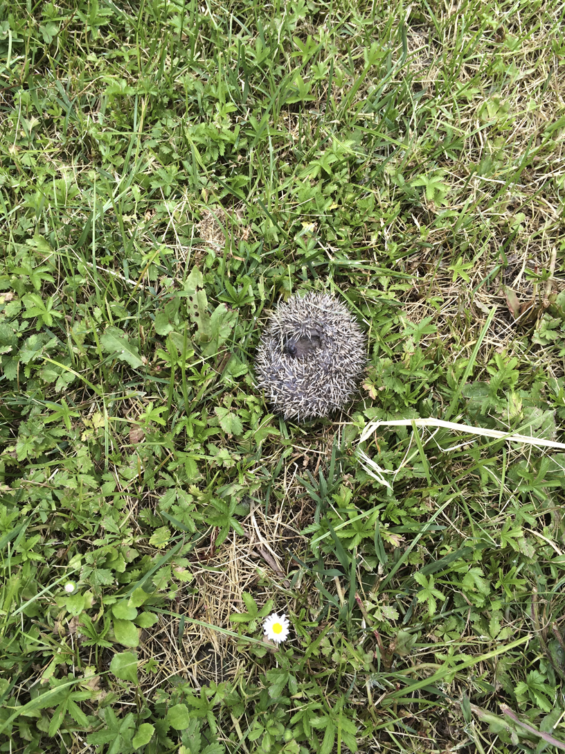Chiamo le due “ragazze” nel mio studio. Esco e studio la situazione. Tutti i ricci sono vivi, respirano. Il piccoletto sta lì, a pancia all’aria, e il nasino sbuca dalla chiusura “a riccio” non così ermetica.