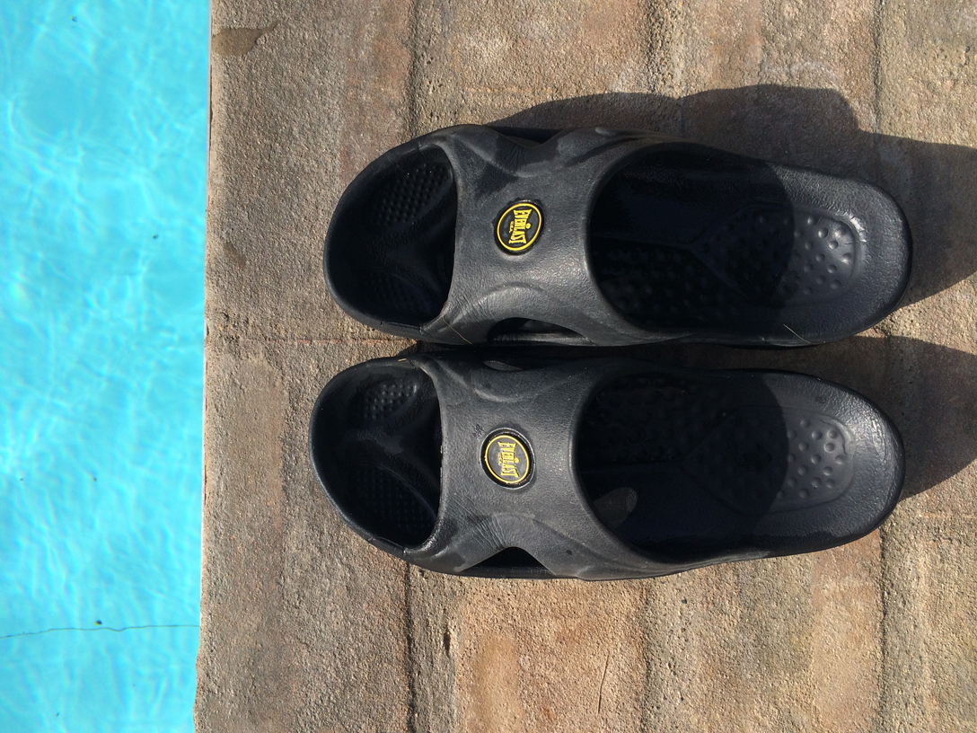 Adoro le mie ciabatte da piscina. Sono nere con una scritta gialla – “Everlast. Usa” – che mi ricorda tanto il “Bat segnale” nei cieli di Gotham City. Ho tanto l’impressione che mi siano rimaste come lascito (non so quanto volontario) da uno dei soggiorni di mio cugino Marco di qualche anno fa.