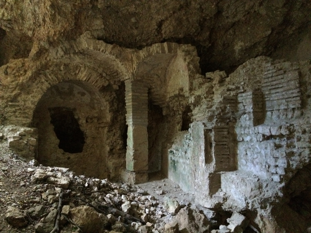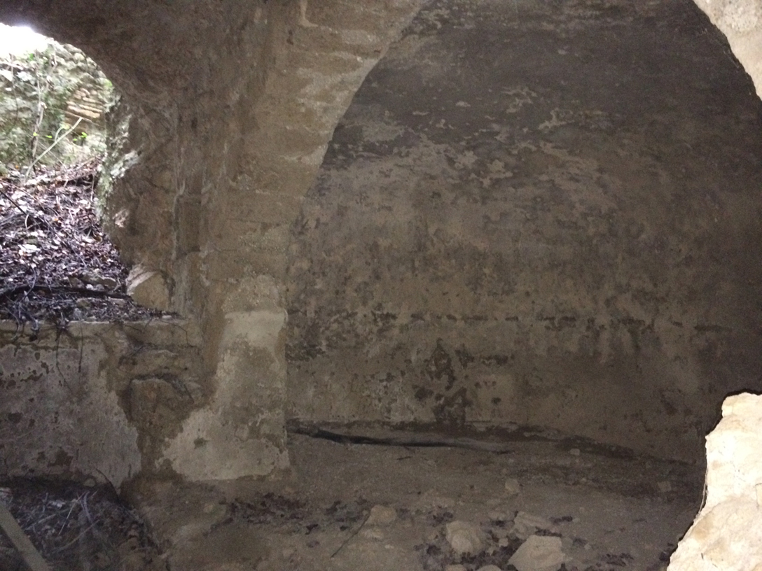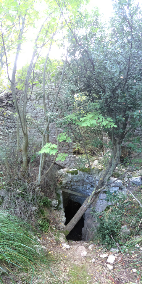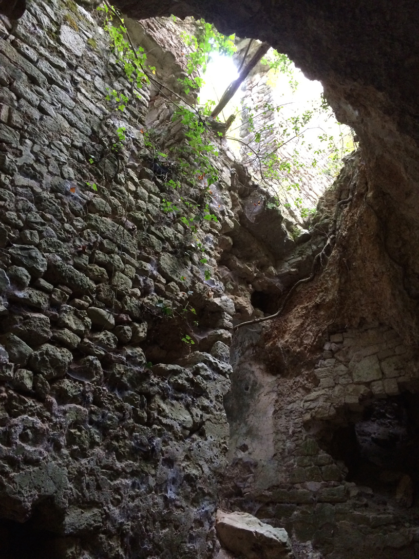 Al primo passaggio l’eremo mi è sfuggito: secondo me mi si nascondeva… Sono arrivato a un altro rudere ma non era l’eremo, quanto un edificio con cisterna. Dal libro ho avuto conferma che l’eremo doveva essere prima e allora sono tornato indietro. Ci ho girato intorno e non l’ho visto, coperto dalle piante com’è, poi però ci sono finito proprio davanti e non ho potuto non vederlo.