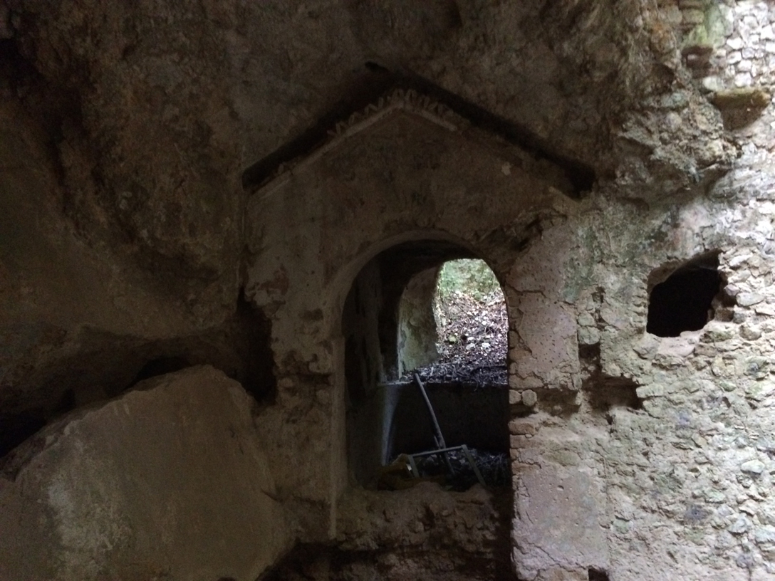 Per trovare l’ingresso alla cripta ho dovuto fare un altro giro. Già disperavo e mi proponevo di tornare con tanto di guanti e cesoie per aprirmi la strada, quando all’improvviso ho visto il varco e sono arrivato in cima alle scale.