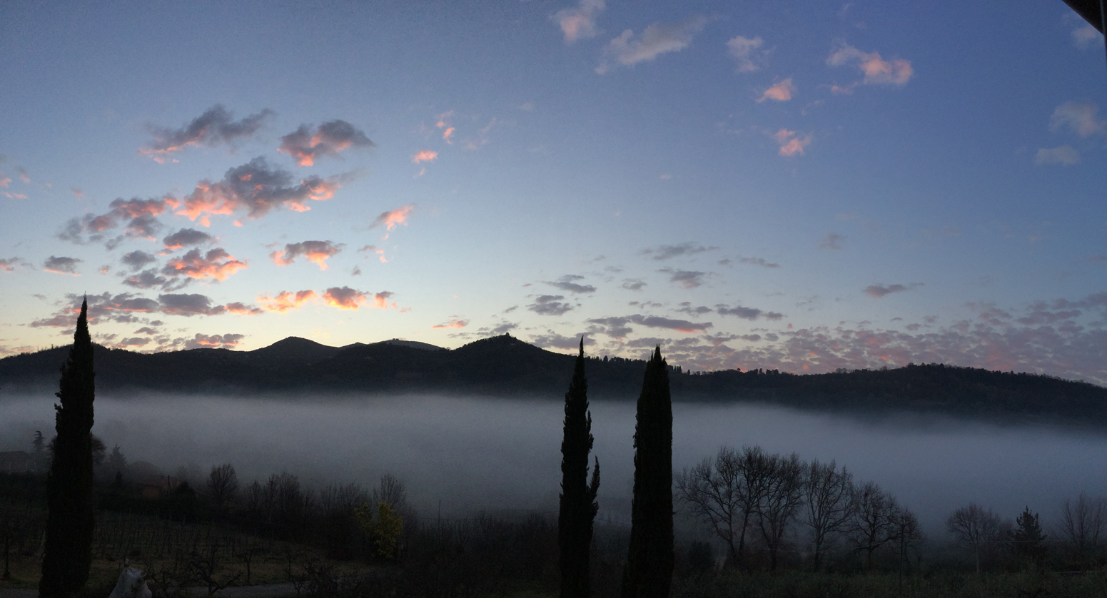 Non so quanto fossi davvero sveglio stamattina all’ora succitata. Ma avendo dimenticato aperte le persiane ho intravisto il lento arrivo del giorno. Alle prime (vabbè, alle seconde) nuvolette rosa con sforzo sovrumano mi sono alzato, ho imbracciato l’i-Phast e ho compiuto il mio dovere di testimone dell’alba.
