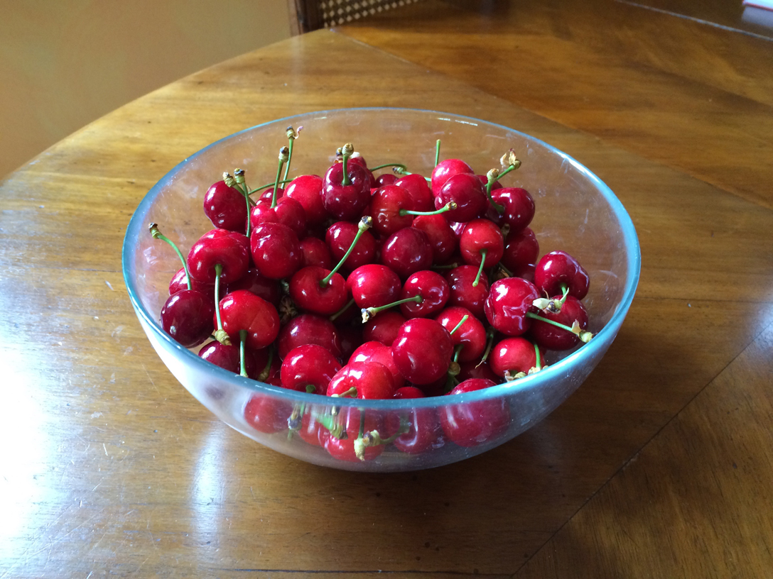 Rosse, carnose, dolci. Sono arrivate e sono già mature le prime ciliegie. Quelle dell’albero più vicino a casa. Sono del tipo Ravenna e occhieggiano sui rami, rosse appunto, tra le foglie verdi. Presto, inevitabilmente, attireranno uccelli e vermi. Ma per questa volta i predatori li abbiamo fregati noi…