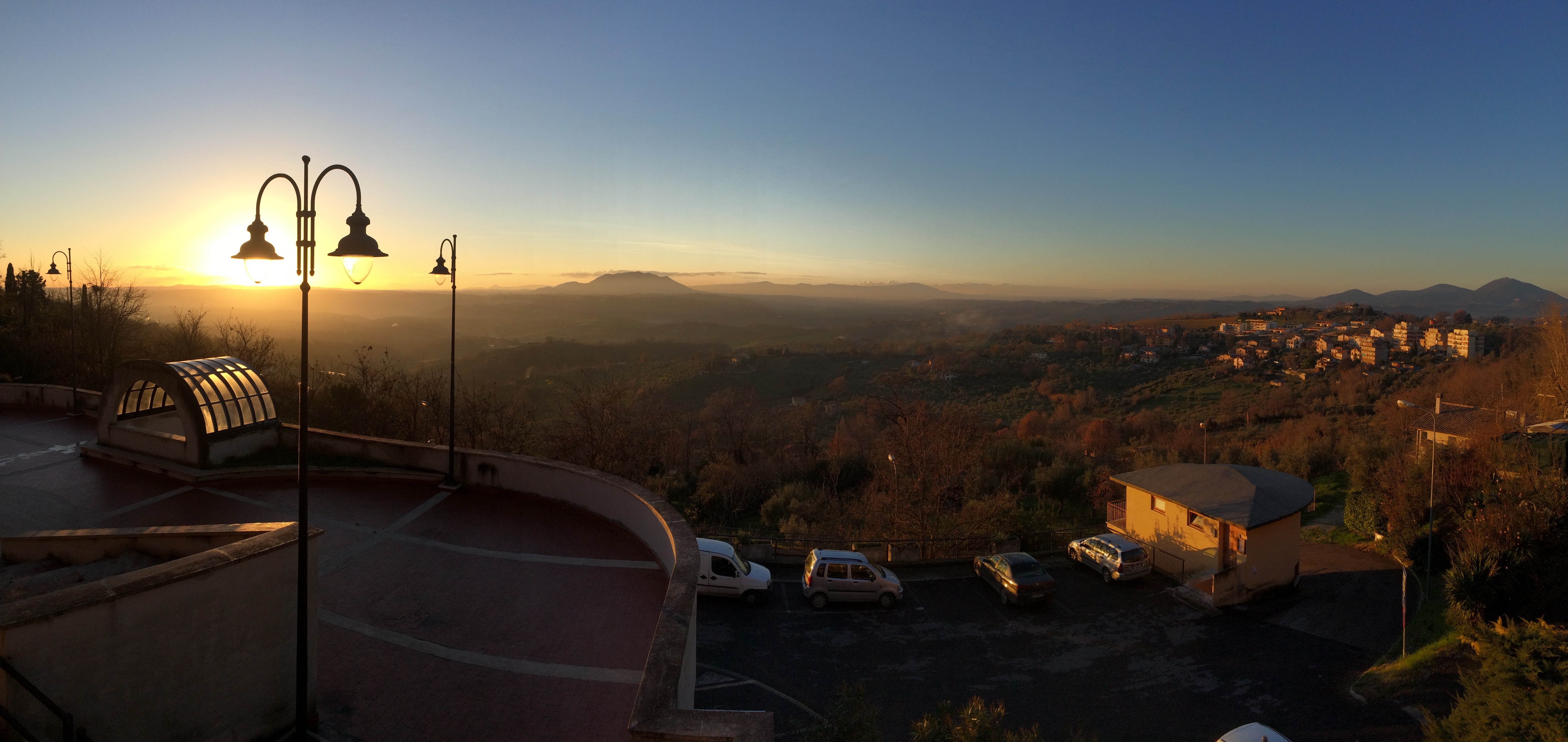 Ecco la foto originale, nella quale l’i-Phast era riuscito a catturare una luce davvero incredibile (siamo a gennaio, l’anno scorso, poco prima delle 17), una luce in grado di nobilitare anche un luogo non certo esaltante come l’edificio che sta davanti al belvedere, con tanto di parcheggio e cemento a profusione.