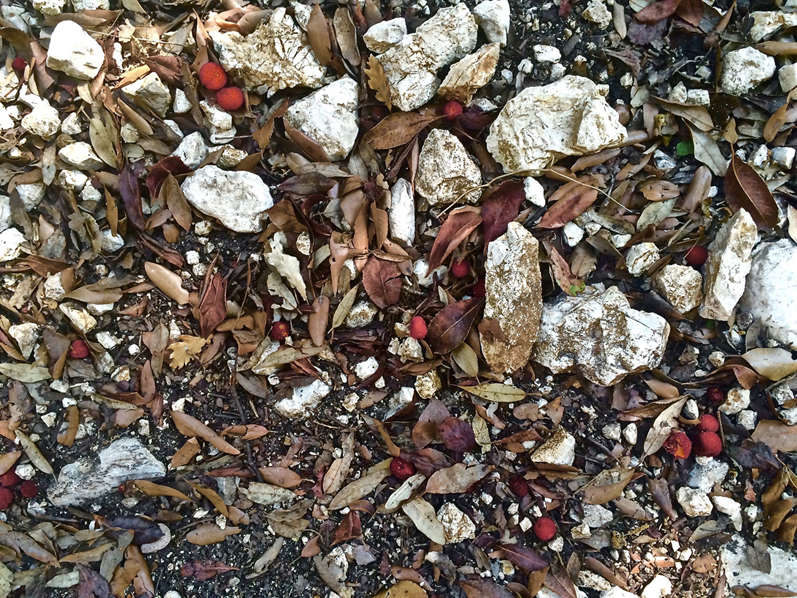 Seguo la strada segnalata dal pastore, mi trovo davanti una discesa ripidissima e scivolosa, con tanti corbezzoli per terra e in aria (capisco perché mi consigliava l’altra strada per tornare al paese…),