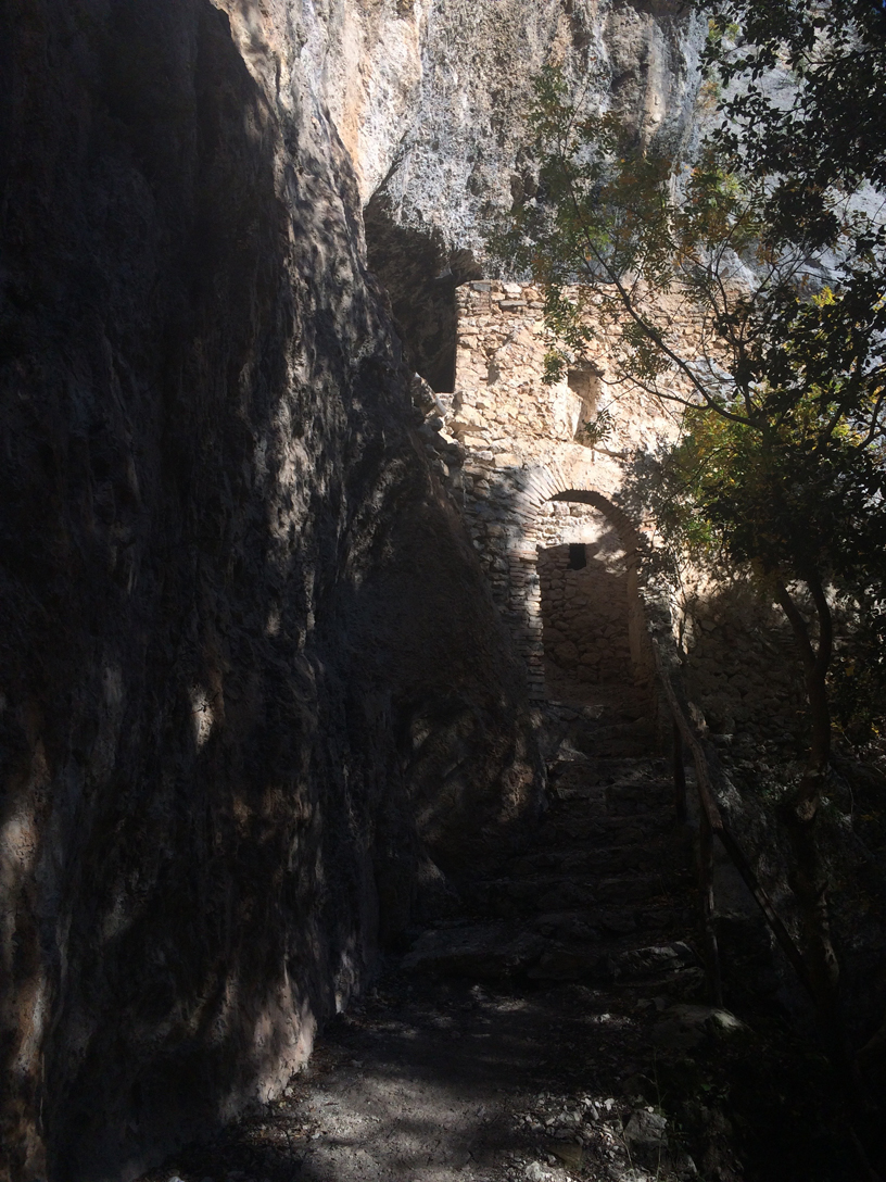 poi arrivo al pianoro con le cataste di legna che il pastore mi aveva segnalato. Di lì non è complicato arrivare all’eremo. E infatti in cinque minuti sono lì, davanti all’ingresso