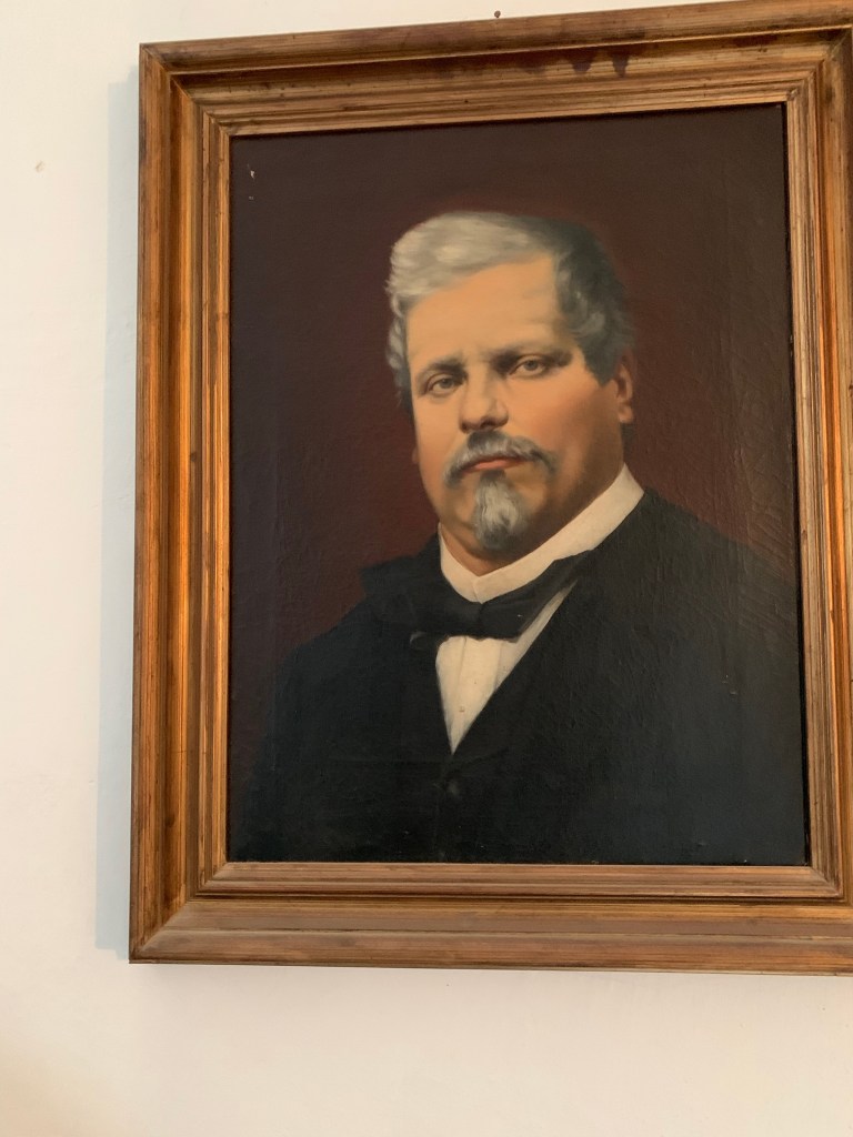 Ieri sono stato a Cantalupo per una visita organizzata dagli Amici del Museo. Tra gli appuntamenti, la visita a Palazzo Ricci-Cati, un antico edificio (sta nella prima cerchia di case costruite quando vi fu l’incastellamento, e dunque le sue origini devono risalire al XIII-XIV secolo) il cui portone si apre sulla via che Cantalupo (a mia conoscenza unico comune in Italia) ha dedicato al mio trisavolo (putativo) Luigi Chierici, che del resto soggiornò più volte e a lungo in una casa su questa strada (dove oggi c’è una lapide che lo ricorda) ospite proprio della famiglia Cati. Nel palazzo, sapevo, c’è un ritratto di Chierici, se non giovane certo più giovane dell’unica foto in mio possesso che ho già pubblicato più volte.