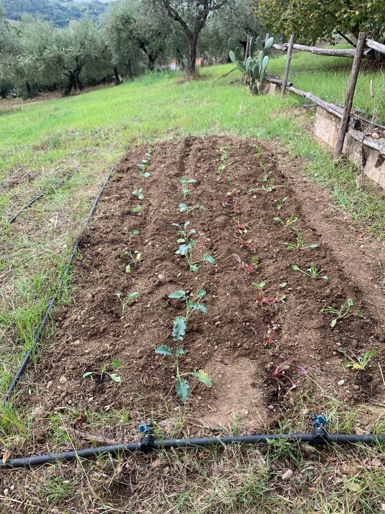 Stamattina ho finito di preparare il mio primo orto. Piccolo, storto, in ritardo, ma mio. In tutti questi anni c’è sempre stato qualcun altro che lo faceva (e io poi gli stavo dietro). Questa primavera avevamo soprasseduto a farlo, quello estivo, per via dell’operazione,del Covid e di tutto quello che ne è conseguito. Ma adesso ho voluto provare a fare il mio orticello invernale, con poche cose: un po’ di biete, qualche broccoletto all’olio, la minestra napoletana e quella di natale: manca solo il cavolo nero ma lo aggiungerò presto.