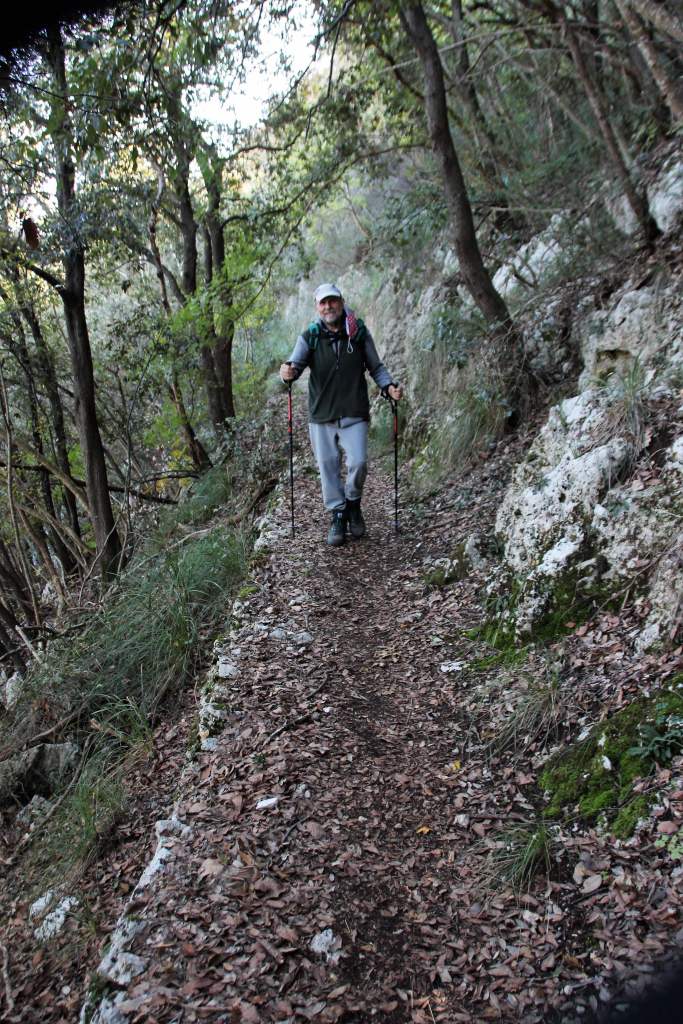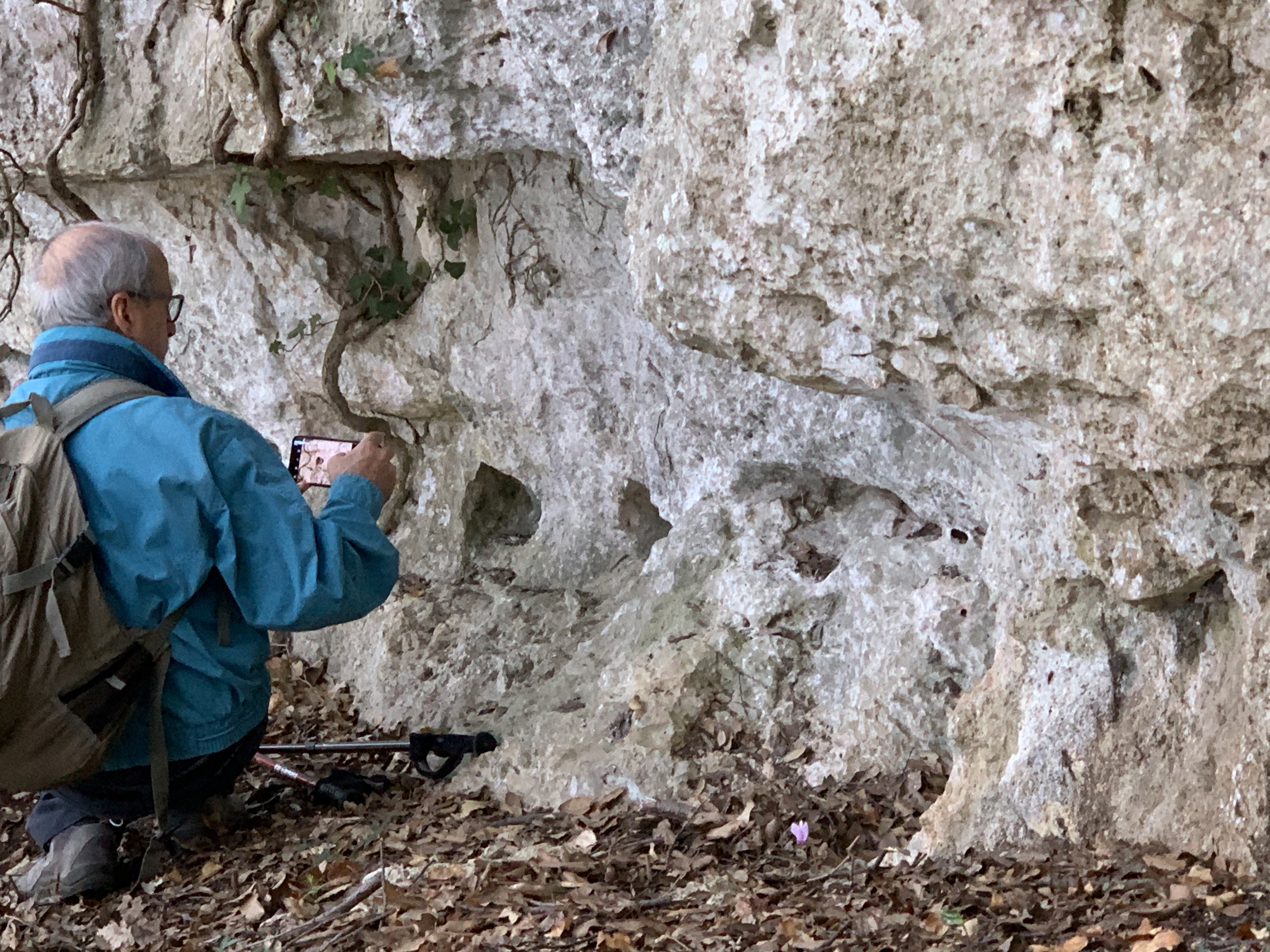 Galantini Jones ha colpito ancora. Ieri il nostro prode eroe, accompagnato, questa volta, dall’altrettanto prode Nat Maddox (il validissimo professor Natale Madeo, grande fotografo e agile montagnard) si è calato dal sentiero degli Elci per raggiungere la grotta di San Nicola, che sta proprio sopra Toffia. Partendo dal cartello scritto in verde, che si trova sul sentiero di mezza costa che parte da Fara e arriva fino in fondo alla catena degli Elci, siamo scesi, utilizzando una traccia di sentiero abbastanza labile, di quella quindicina di metri necessari per arrivare alla parete verticale, in parte naturale, in parte realizzata dall’uomo con un muro di pietre e calce, sotto alla quale si apre la cavità.