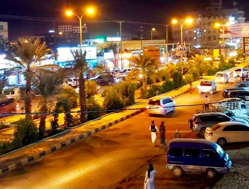 Accennavo prima alle fotografie dei siti archeologici. Quelle della città che si trovano dentro la pagina che si apre cliccando su Ma’rib sono fotografie in gran parte notturne: un reticolato di strade luminose dall’alto cui fa da contraltare un semibuio là dove sono le case e il buio completo la dove non ci sono né abitazioni né uffici e meno ancora negozi; una strada piena di luci e di automobili, vista da un tetto più alto; un’altra strada in piena luce con qualche persona che cammina tra le macchine parcheggiate. E poi ancora notturni pieni di vita e di automobili in movimenti; una panoramica della città da un punto sopraelevato mentre infuria un temporale e rami contorti di fulmini solcano il cielo.