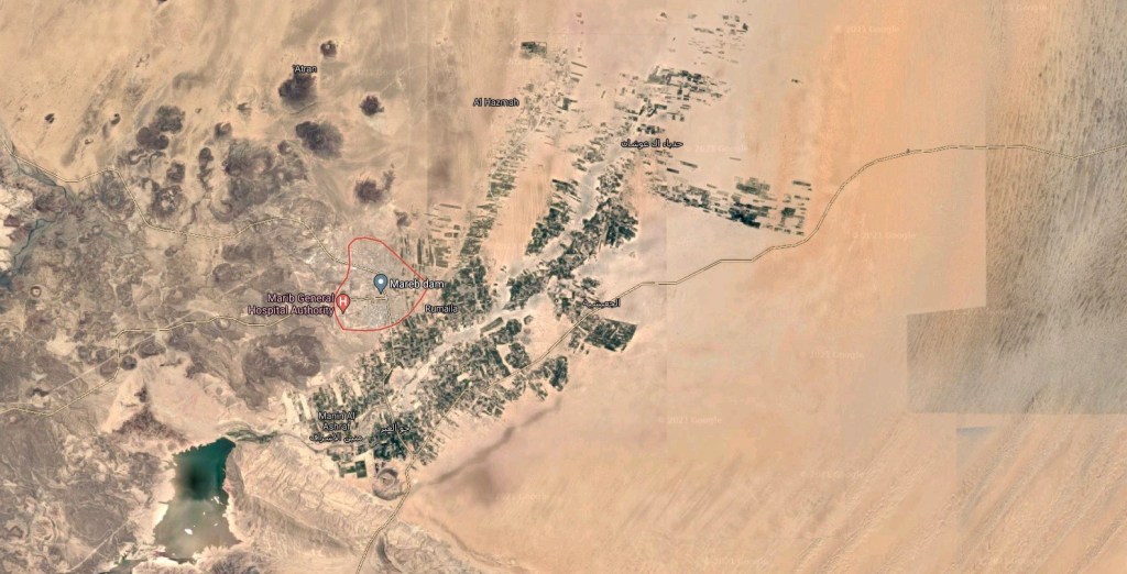 Clicco in basso a sinistra sullo Yemen angoluto e scendo dal satellite sempre più in giù. Fermo l’ascensore a una certa altezza. Vedo abbastanza bene sotto di me. Strano posto. Con tanto spazio tutto color sabbia (chi l’avrebbe mai detto…), macchie più scure e una macchia molto sfrangiata alla sinistra, tra il verde e il nero (ma questa in effetti la noterò dopo e mi spiegherà molte cose). Sulla mappa leggo “Ma’rib” “Rumaila” e “Al Hazmah”. Cerco sulla rete e vedo che Ma’rib è il nome del Governatorato locale, non capisco subito che è una città, le immagini da quest’altezza sono sfocate, il color sabbia domina su tutto il resto. Rumaila dal canto suo, mi dicono tutte le notizie che trovo sul motore di ricerca, è il sito petrolifero più importante dell’Iraq, ma evidentemente quel (o quella) Rumaila sta da tutt’altra parte e non c’entra niente con questo posto qui. E a proposito di “Al Hazmah” Google mi dice, ogni volta che digito questo nome, che forse cercavo “Al Hamzah”, il fratello ribelle del re di Giordania: le prime tre paginate infatti solo di lui parlano. Ovviamente non accetto il suggerimento: che me ne faccio nello Yemen del fratello del re Abdallah? Insisto nella mia ricerca e trovo finalmente delle previsioni meteo per Al Hazmah: più o meno 40 gradi fissi tutti i giorni. Dalle previsioni capisco anche che Al Hazmah deve essere un quartiere della città di Ma’rib.