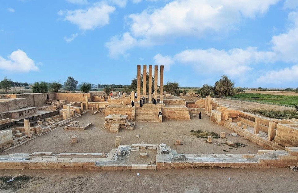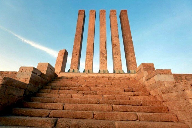 Ed è a questo punto che noto, alla base della mano a tre dita, un segnalino con ha come didascalia “Throne of Queen of Sheba, Barran Temple”. La regina di Saba? Già, avevo letto che questo era il regno dei Sabei, ma non avevo fatto il collegamento. Clicco sul segnalino, che in questo caso è situato proprio sul giacimento archeologico e vedo delle splendide foto (in realtà è splendido il sito) con i resti delle mura perimetrali di un tempio e, al centro, una scalinata che conduce a un podio rialzato sul quale troneggiano cinque colonne. Anzi no, cinque pilastri (e mezzo). Era il tempio dedicato ad Almaqah, dio del Sole per i Sabei (ma venerato anche ad Axum, in Etiopia). Anche se poi venne conosciuto come il Trono di Bilquis (uno dei nomi attribuiti alla regina di Saba) probabilmente proprio per quelle colonne sul podio che ricordano un trono. Ci sono poi altre foto, con donne velate in nero come turiste e, quasi alla fine della serie, c’è una foto in cui le colonne/pilastri sono sette. Un altro miraggio?