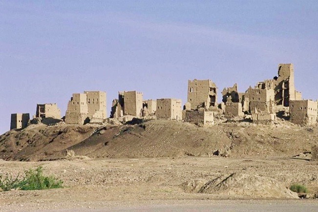 In pieno trip archeologico dimentico per un po’ la benedetta gelateria e vedo che pochi chilometri più a nord dei templi (sono sette, i chilometri, ma sulle mappe è difficile calcolare le distanze precise) ci sono anche i resti della vecchia Ma’rib. Antichi edifici diruti di qualche secolo fa (molti secoli fa), quindi già di tempi islamici, torri, moschee, case, sotto i quali però pare vi siano antche antichissimi resti Sabei.