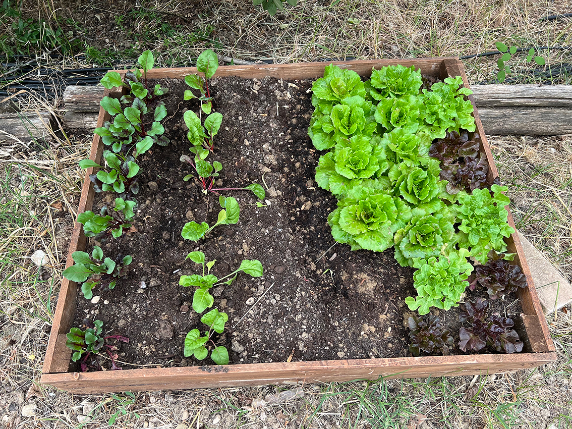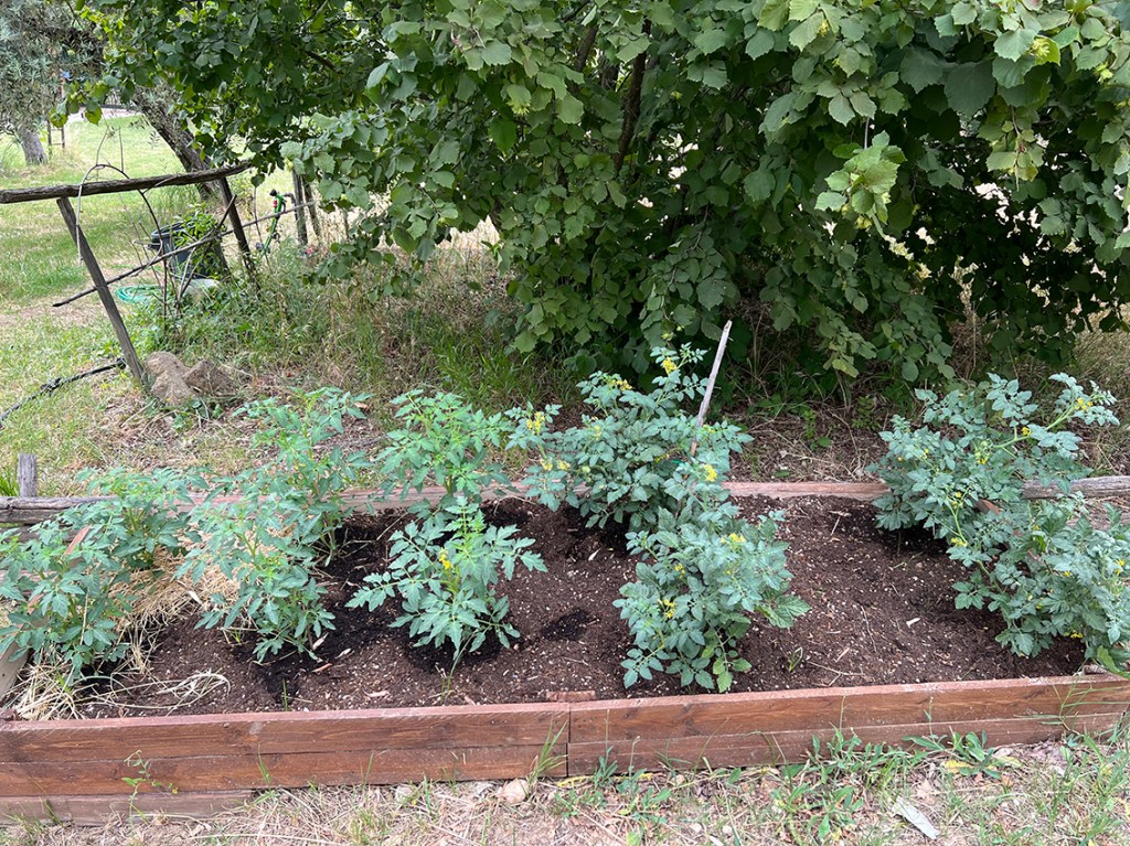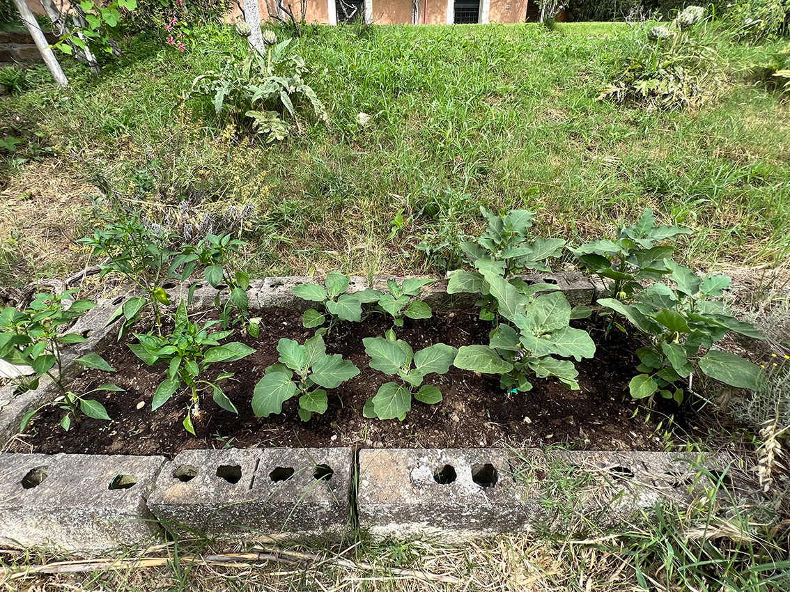 Così quest’anno abbiamo (pluralis maiestatis, manco fossi LIlibet…) abbandonato l’idea dell’orto in terra piena e in pieno sole, che l’anno scorso tanta fatica e pochi risultati aveva portato, optando per più modesti orticcioli in casse all’uopo allestite in zone un po’ ombrose e rialzate da gradoni che andrebbero invero consolidati. Tanto terriccio buono e, sotto ogni piantina, un po’ di cornunghia, fertilizzante naturale a lento rilascio d’azoto, così mi ha consigliato l’amico Max che di queste cose capisce e ha degli orti (ne ha due, quello basso e quello alto) che nemmeno se vivessi tre volte io ci riuscirei.
