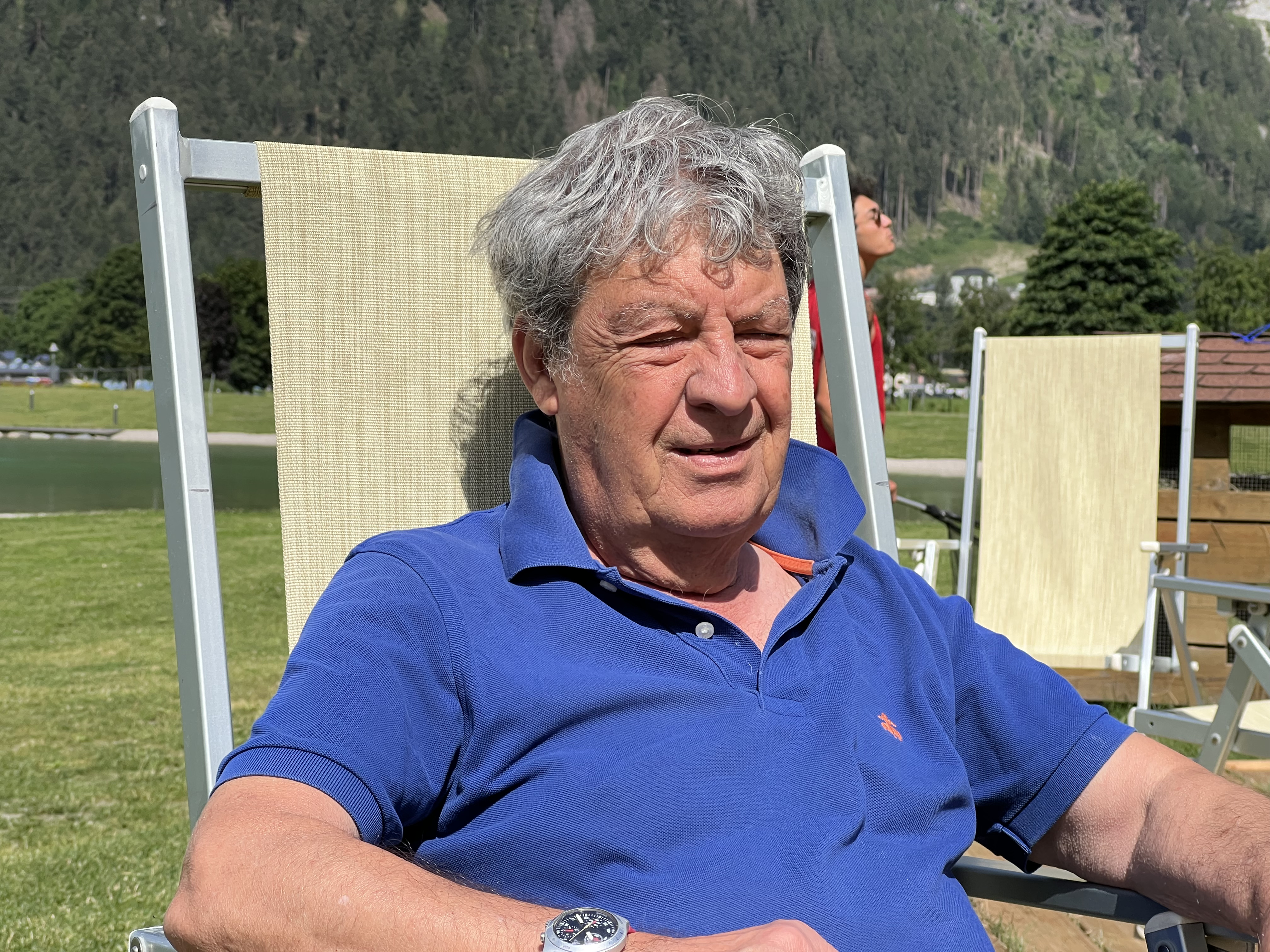 C’è chi rinuncia e chi invece no. E c’è chi, oltre a non rinunciare lui, ti motiva a insistere pure tu. Mio cognato Franco, il rilassato ragazzino 75enne che ho ritratto stamattina sulla sdraio al Biolago di Predazzo, mentre sorseggiava in tutta tranquillità uno skiwasser, non è solo uno che non molla mai, è un grande motivatore.